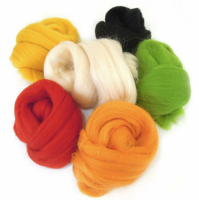 Шерсть для валяния, Яркая осень, полутонкая шерсть 100 %, набор 6 цветов, 50 г