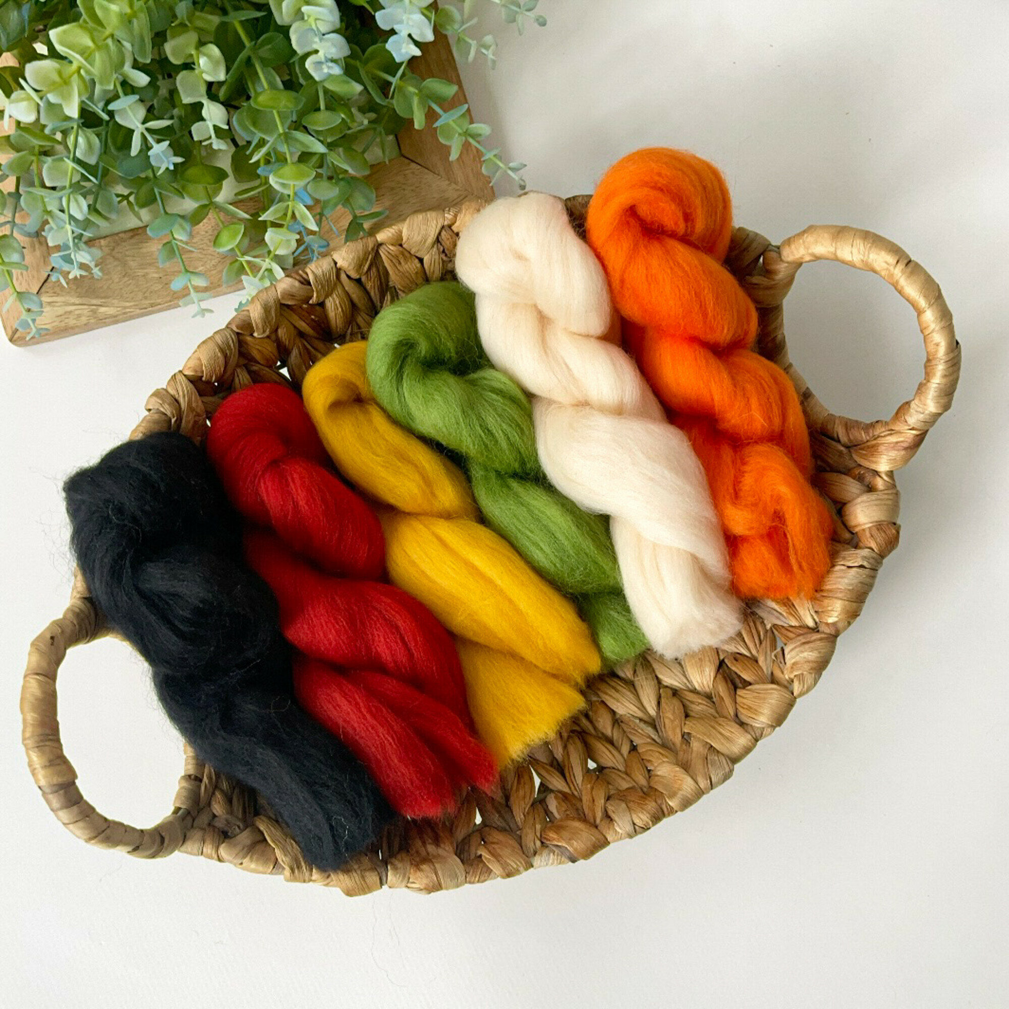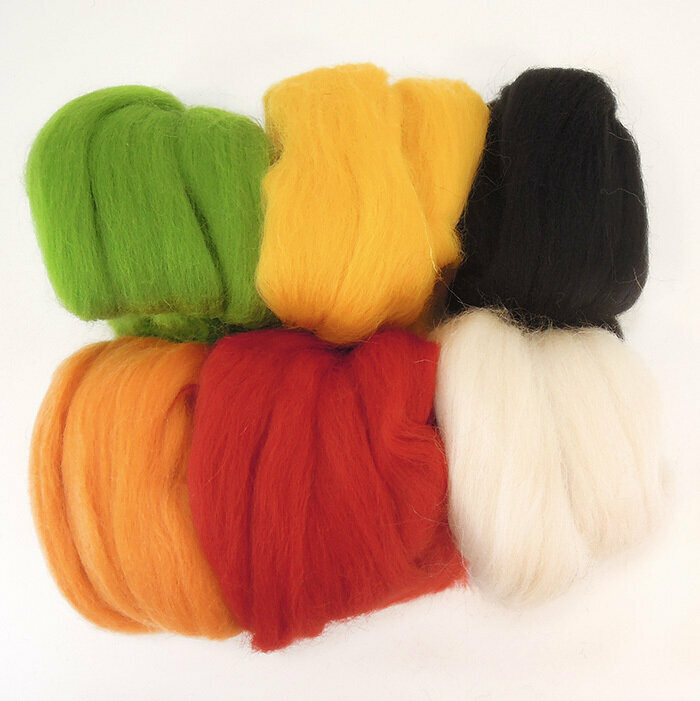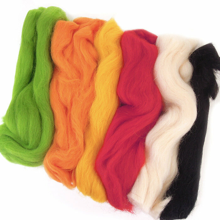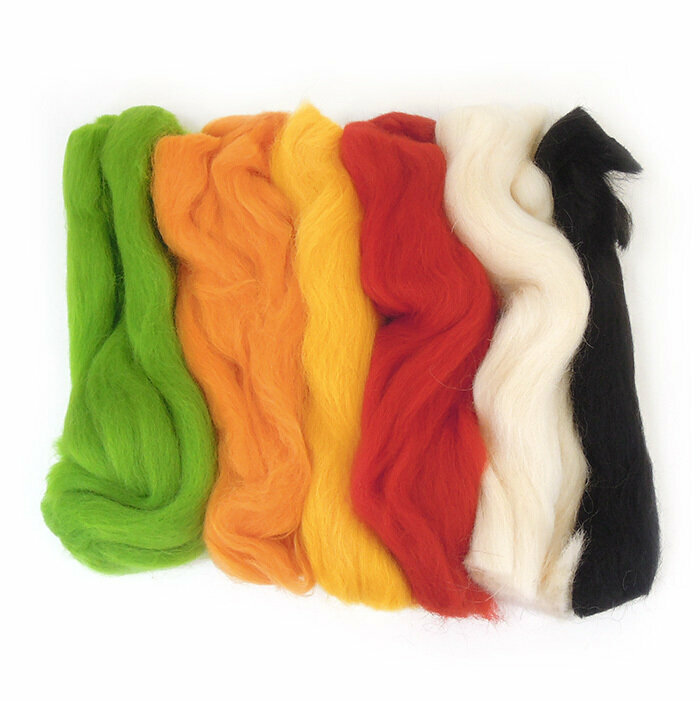 Шерсть для валяния, состав шерсть 100%, 50 гр., набор 6 цветов - яркие цвета