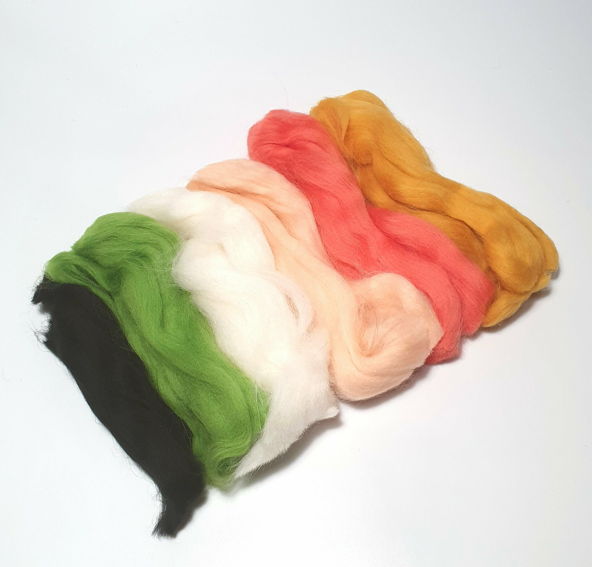 Шерсть для валяния, состав шерсть 100%, 50 гр, набор 6 цветов - Летние цвета