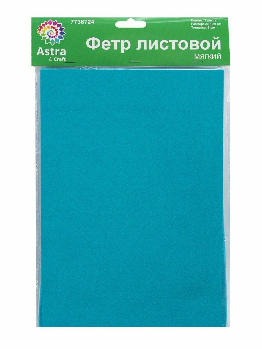 Фетр листовой мягкий 3 мм, Astra&Craft, 20х30 см, 3 шт (AF834/YF683 морской волны)