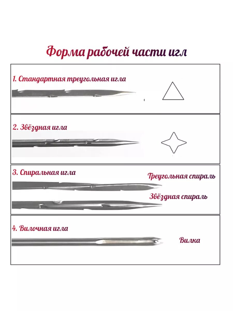Иглы для валяния шерсти супер тонкие №42 бренда "Кофанов" из калёной стали со стандартной формой зубцов, 10 штук в комплекте + методичка