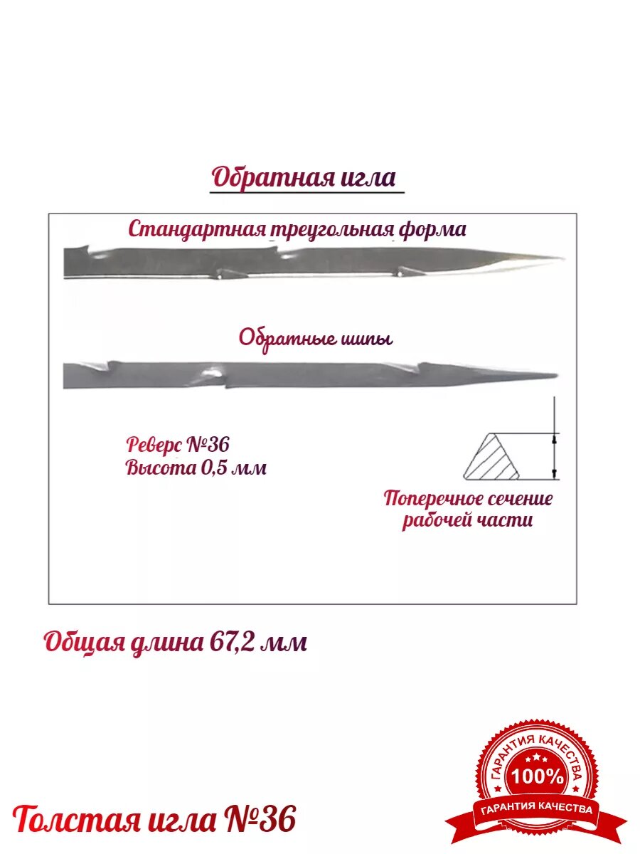 Иглы для валяния шерсти грубые №36 бренда "Кофанов" из калёной стали со стандартной формой зубцов в количестве 10 штук