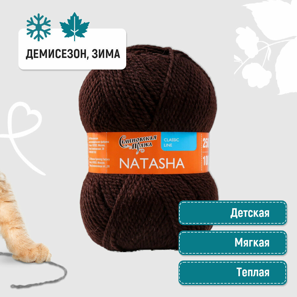 Пряжа для вязания Семеновская пряжа (Natasha) Наташа, акрил и шерсть, коричневая 5 шт. цвет 70015
