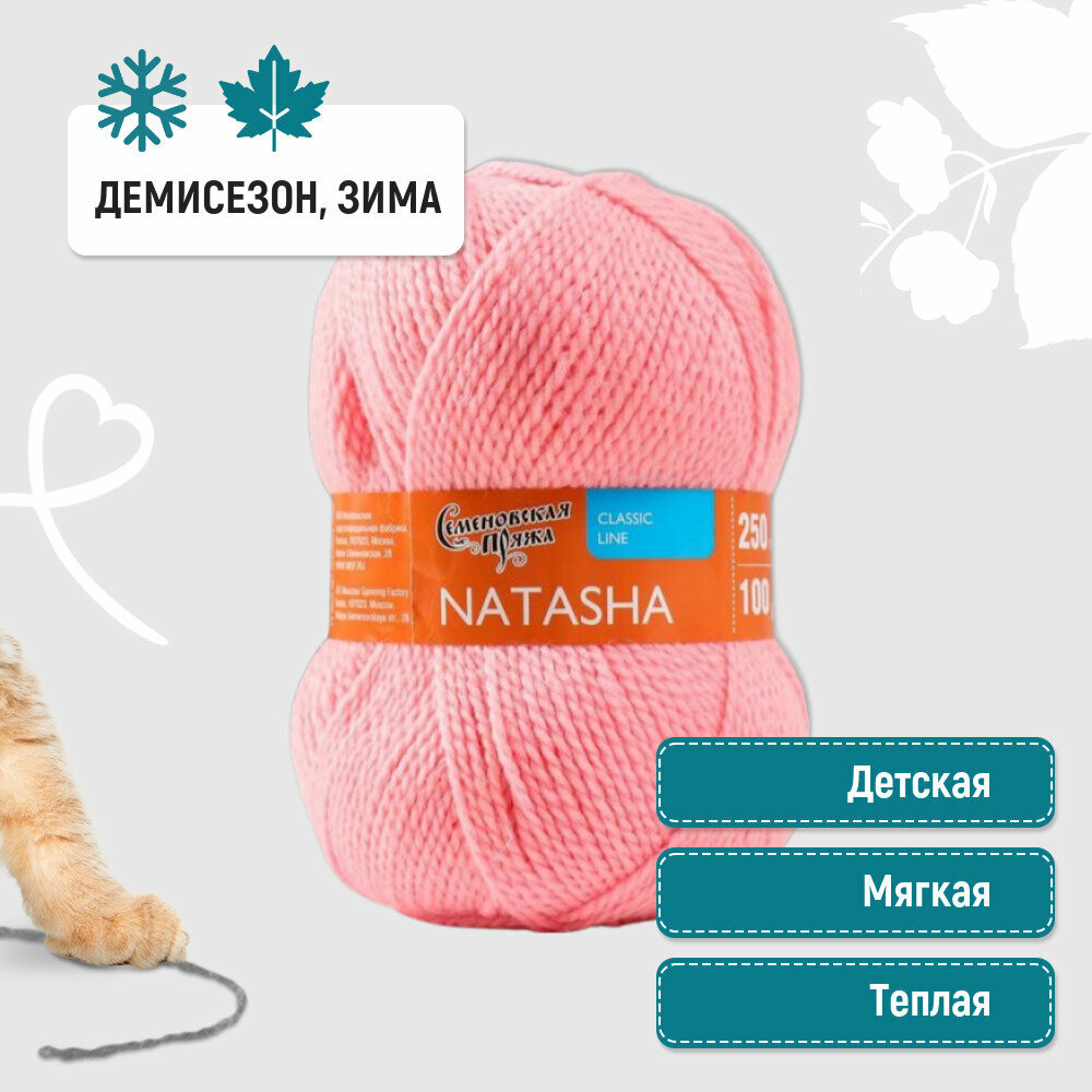 Нитки для вязания Семеновская пряжа (Natasha) Наташа 5 шт, полушерсть, фрез №12502