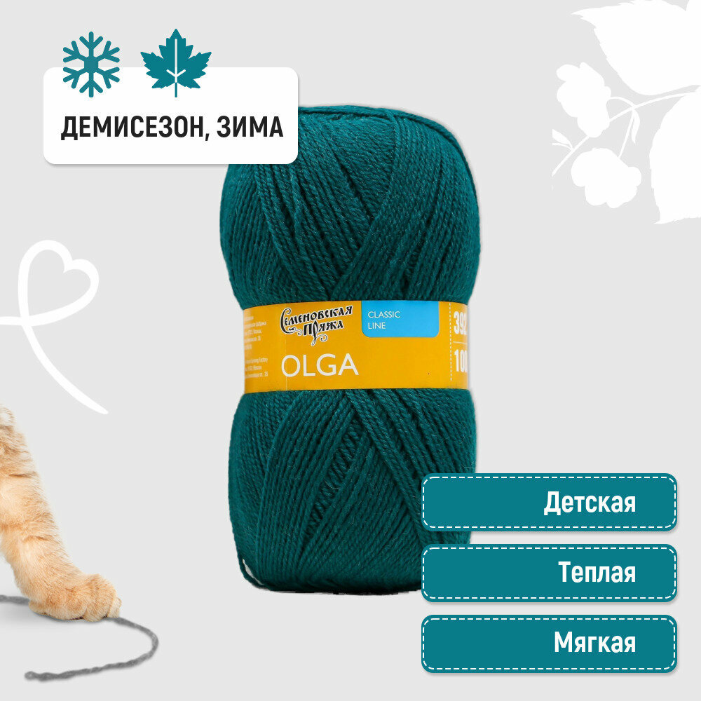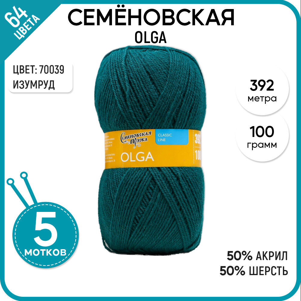 Купить Нитки для вязания Семеновская пряжа (Olga) Ольга 5 шт, полушерсть, изумруд №70039