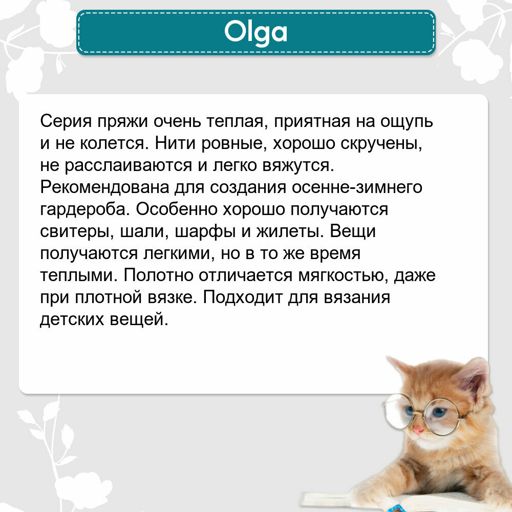 СохранитьПряжа Семеновская Olga (Ольга ПШ) махагон (1443), 50%шерсть/50%акрил, 392м, 100г, 5шт интересное: