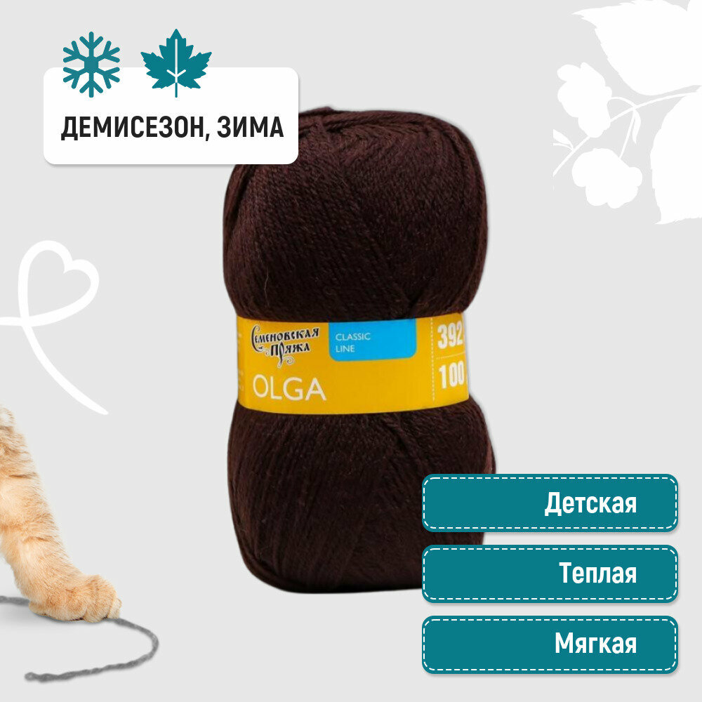 Пряжа Семеновская Olga (Ольга ПШ) какао_NEW (13378), 50%шерсть/50%акрил, 392м, 100г, 1шт