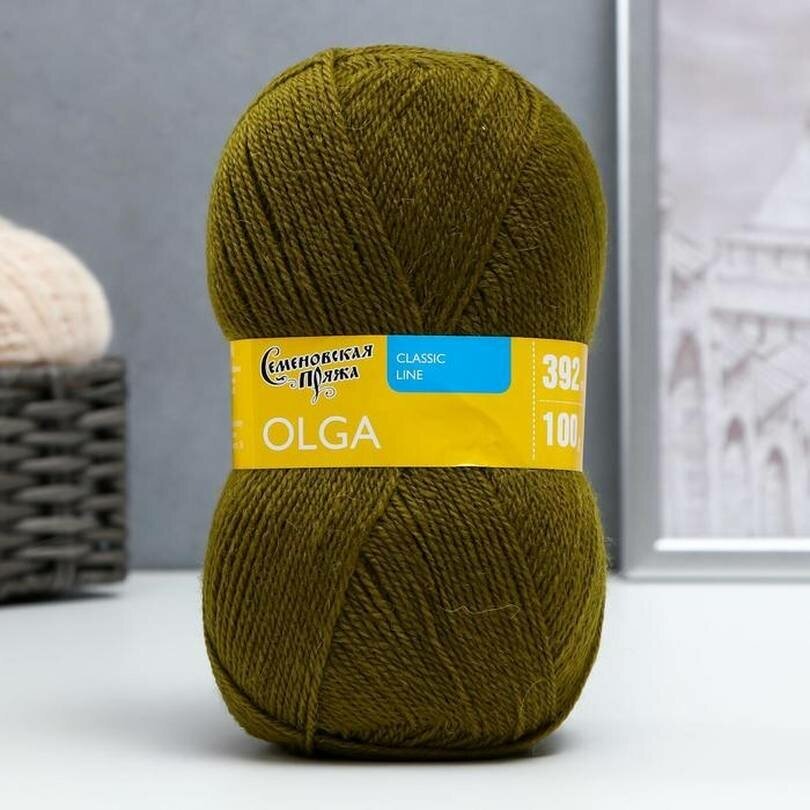 Пряжа Семеновская Olga (Ольга ПШ) липа (345), 50%шерсть/50%акрил, 392м, 100г, 2шт