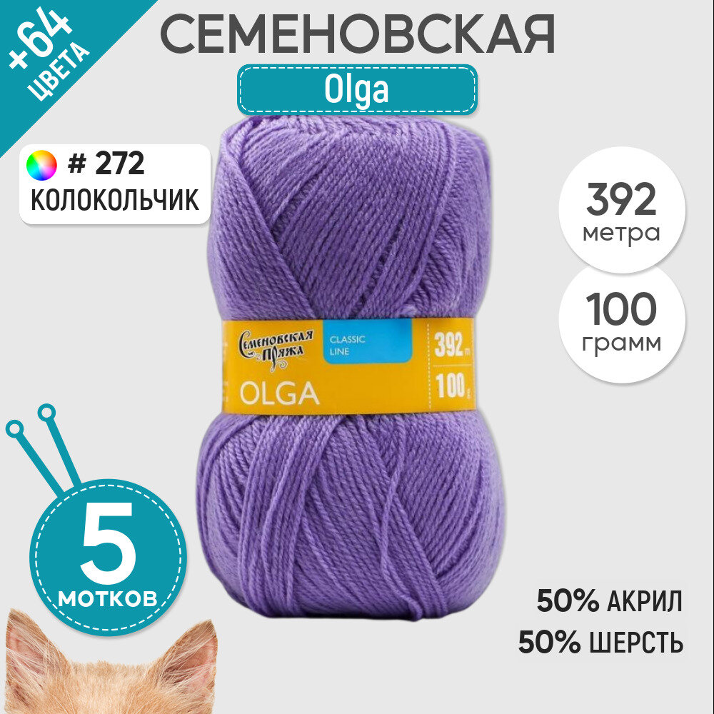 Купить Пряжа Семеновская Olga (Ольга ПШ) колокольчик (272), 50%шерсть/50%акрил, 392м, 100г, 5шт