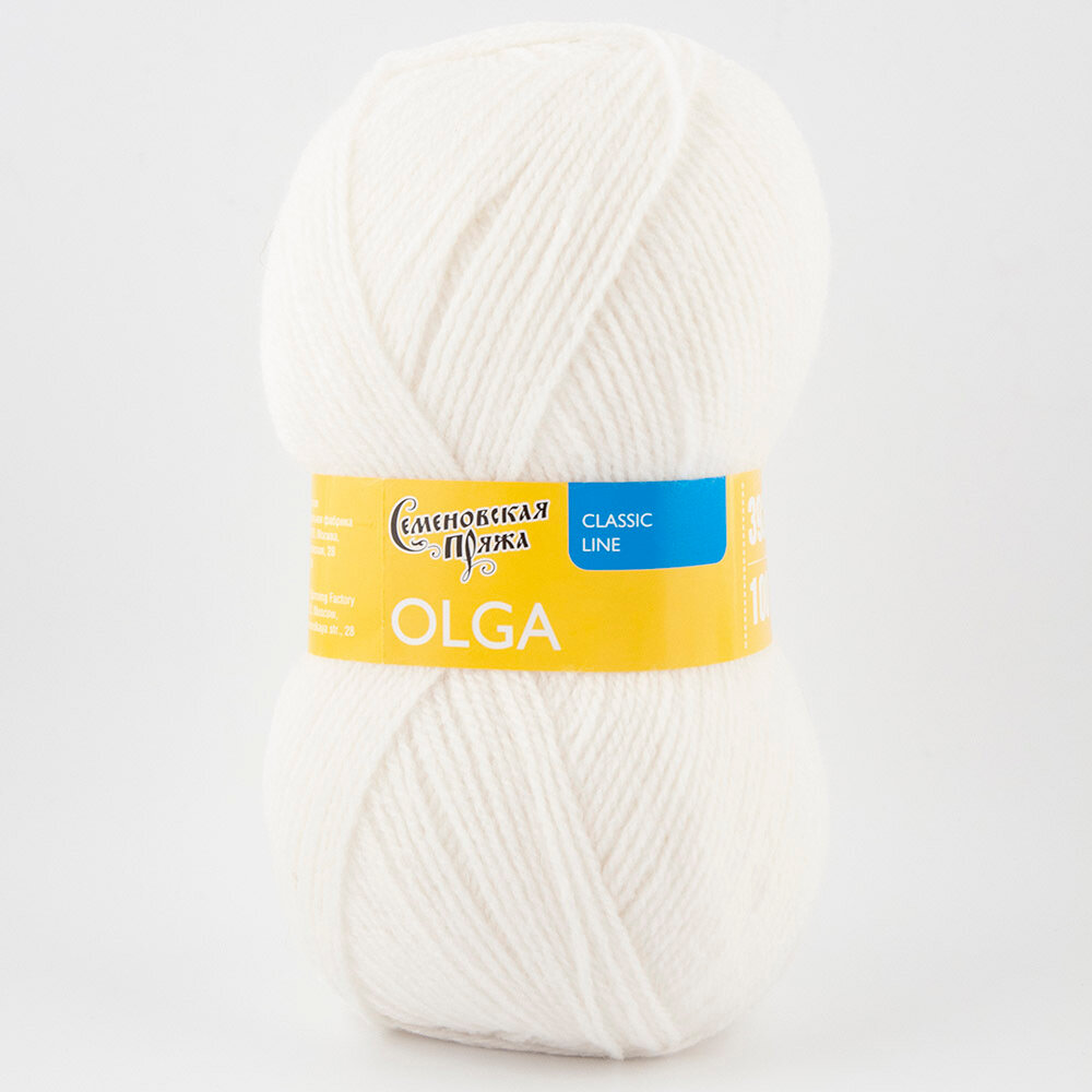 Пряжа Семеновская Olga (Ольга ПШ) ультрабелый (964), 50%шерсть/50%акрил, 392м, 100г, 1шт