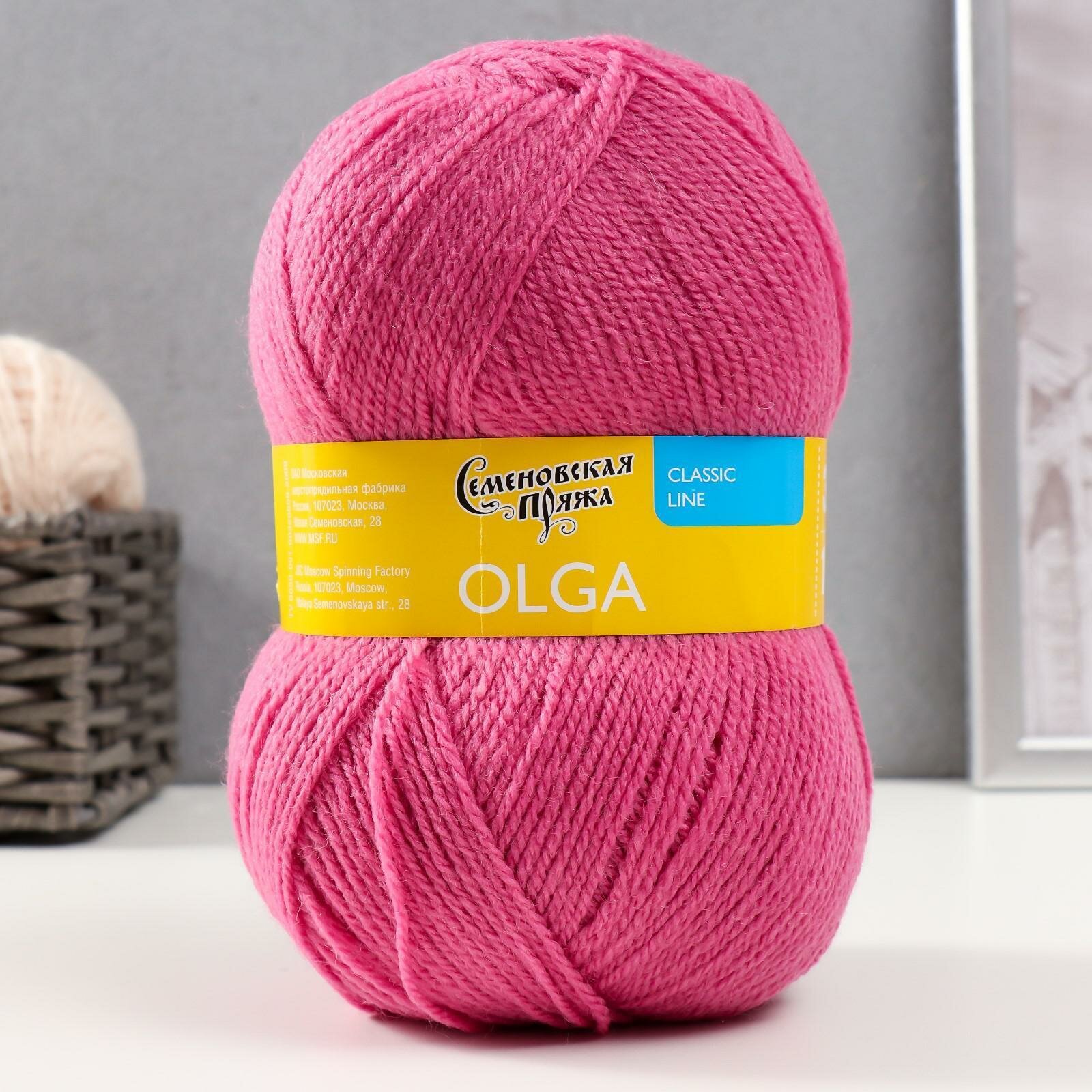Пряжа Семеновская Olga (Ольга ПШ) розовый (20), 50%шерсть/50%акрил, 392м, 100г, 1шт