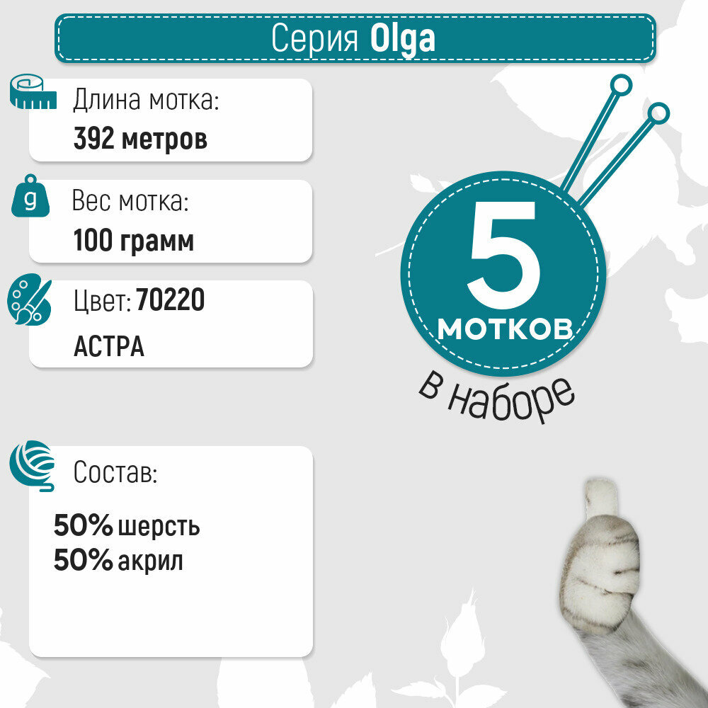 Пряжа Семеновская Olga (Ольга ПШ) астра_v2 (70220), 50%шерсть/50%акрил, 392м, 100г, 1шт