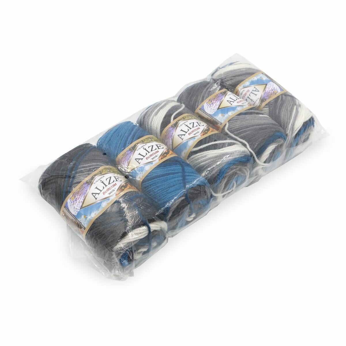 Пряжа Alize Burcum Batik бело-серо-синий (1899), 100%акрил, 210м, 100г, 5шт