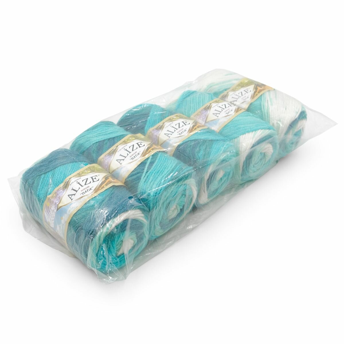 Пряжа Alize Burcum Batik бело-бирюзовый (1892), 100%акрил, 210м, 100г, 5шт
