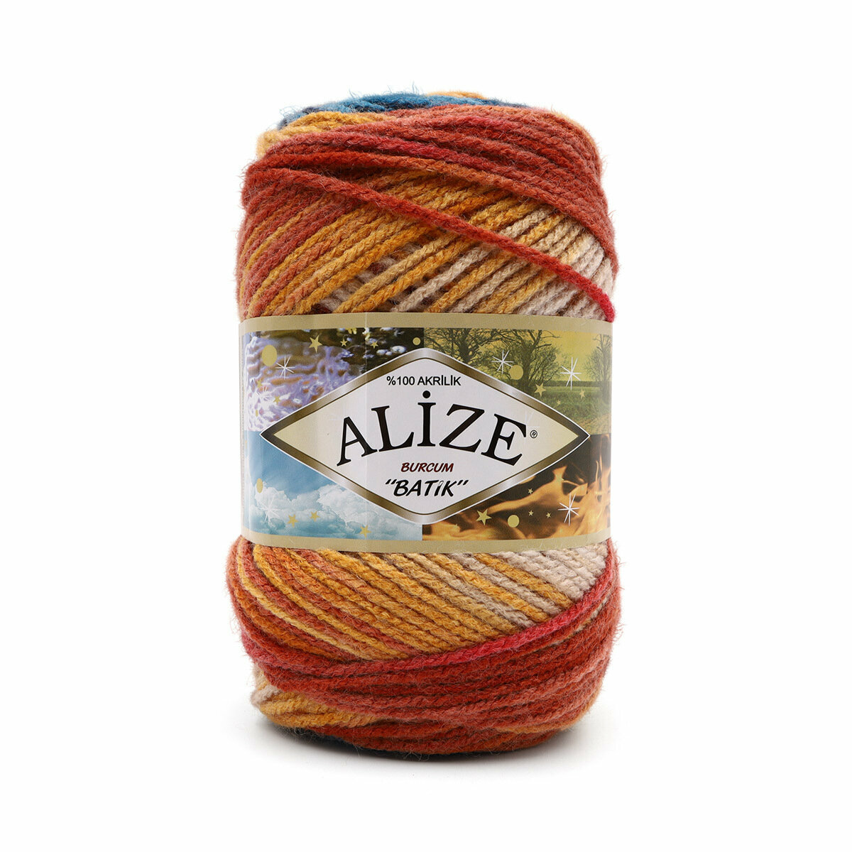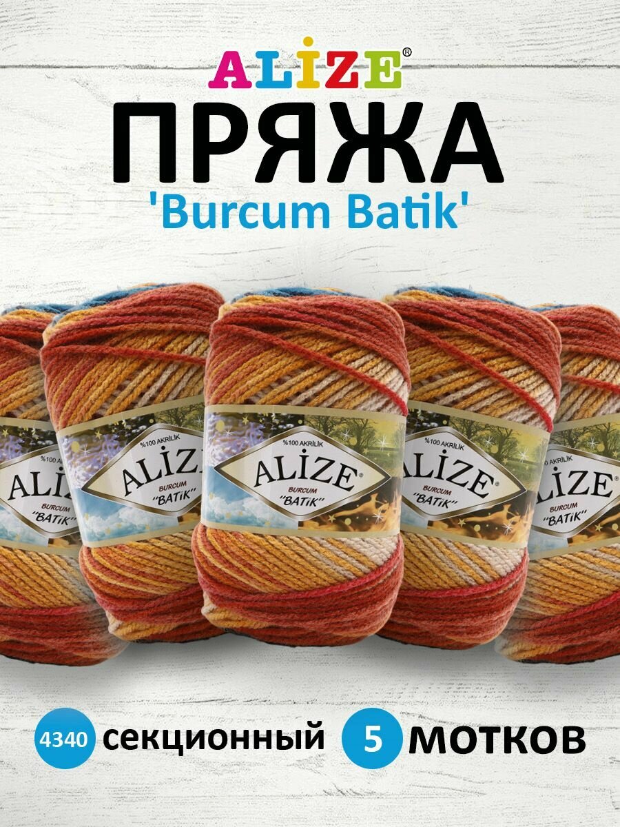 Купить Пряжа Alize Burcum Batik морская волна-малиновый-терракот-желто-бежевый (4340), 100%акрил, 210м, 100г, 5шт