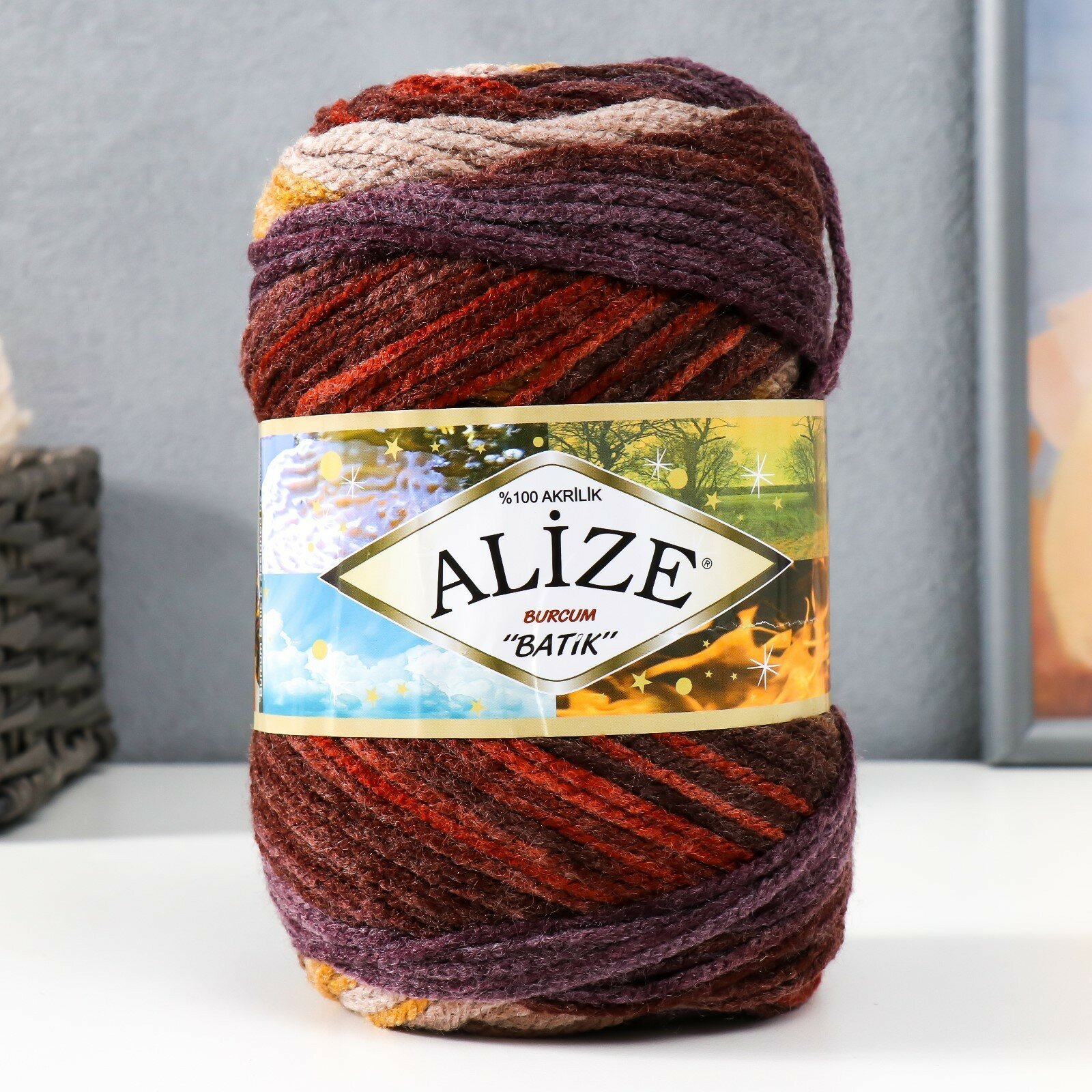 Пряжа Alize Burcum Batik молочный-красный-коричневый (4574), 100%акрил, 210м, 100г, 1шт
