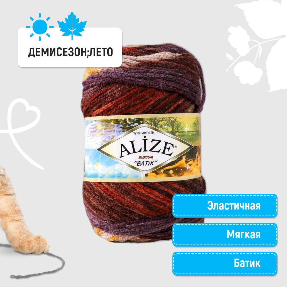 Пряжа Alize Burcum Batik молочный-красный-коричневый (4574), 100%акрил, 210м, 100г, 5шт