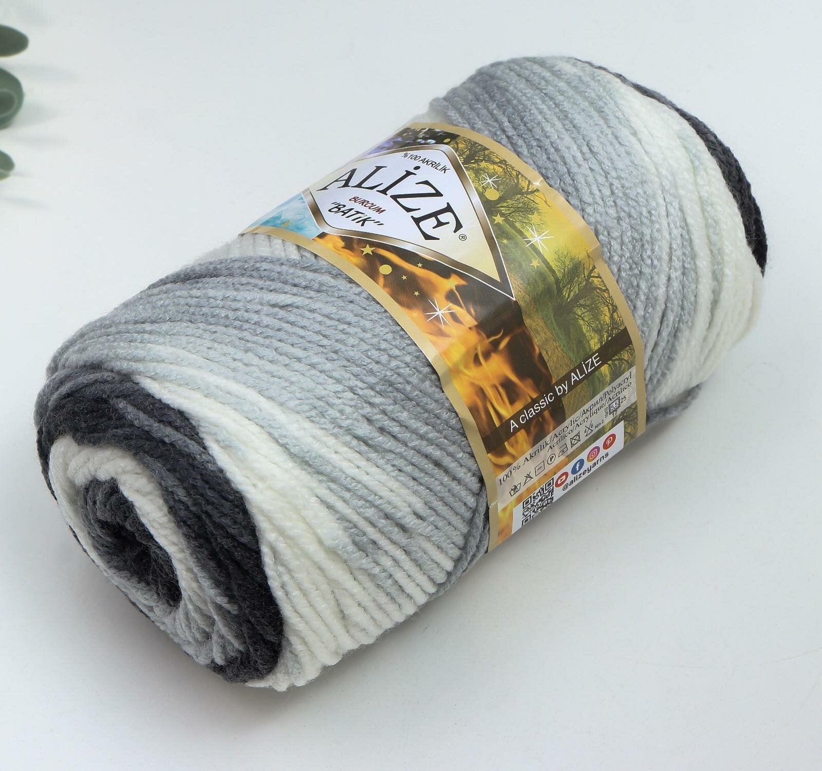 Пряжа Alize Burcum Batik бело-серо-черный (4428), 100%акрил, 210м, 100г, 2шт