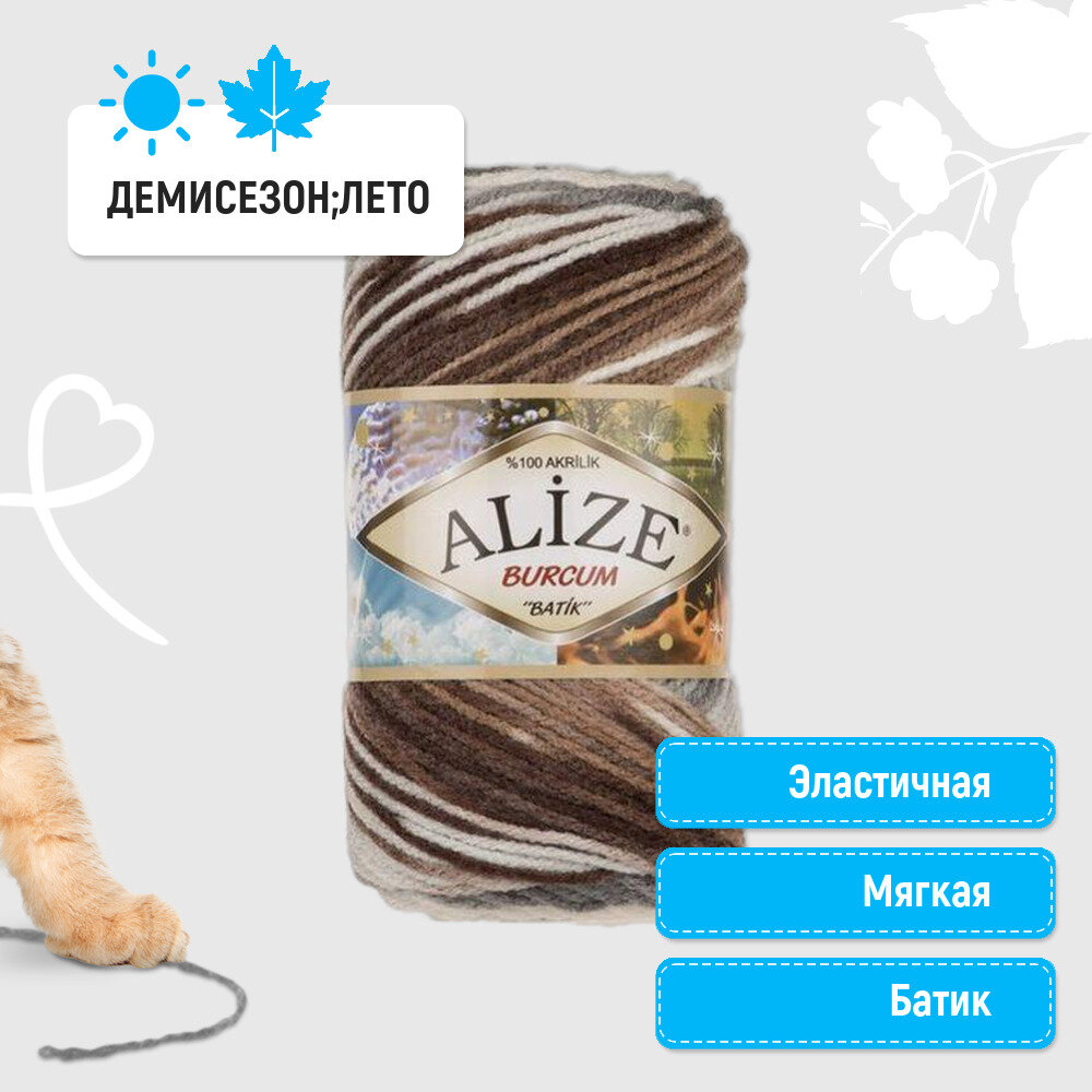 Пряжа Alize Burcum Batik белый-серый-коричневый (5742), 100%акрил, 210м, 100г, 1шт