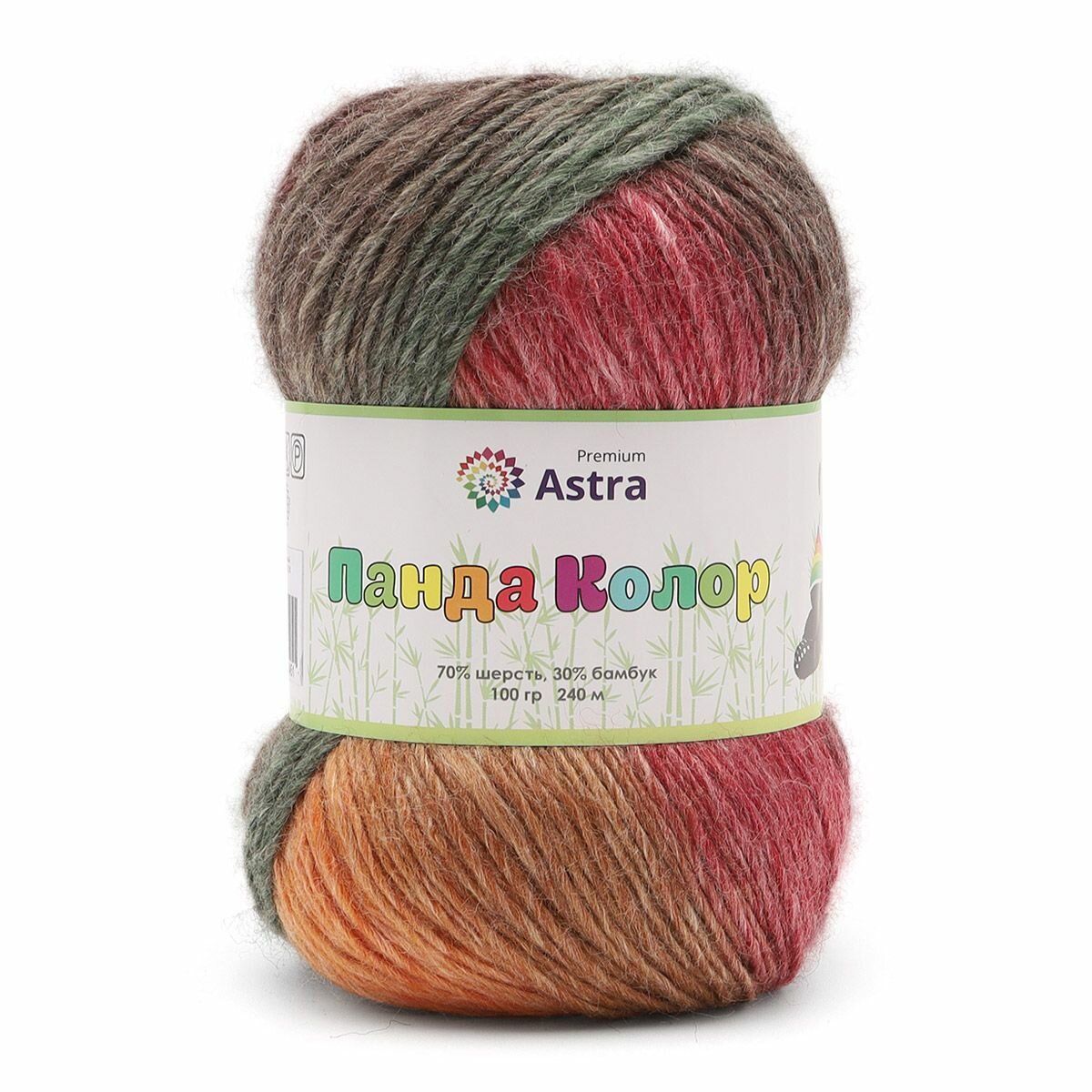 Пряжа для вязания Astra Premium 'Панда Колор' (Panda Color) 100г, 240м (70% шерсть, 30% бамбук) (05 секционный), 3 мотка