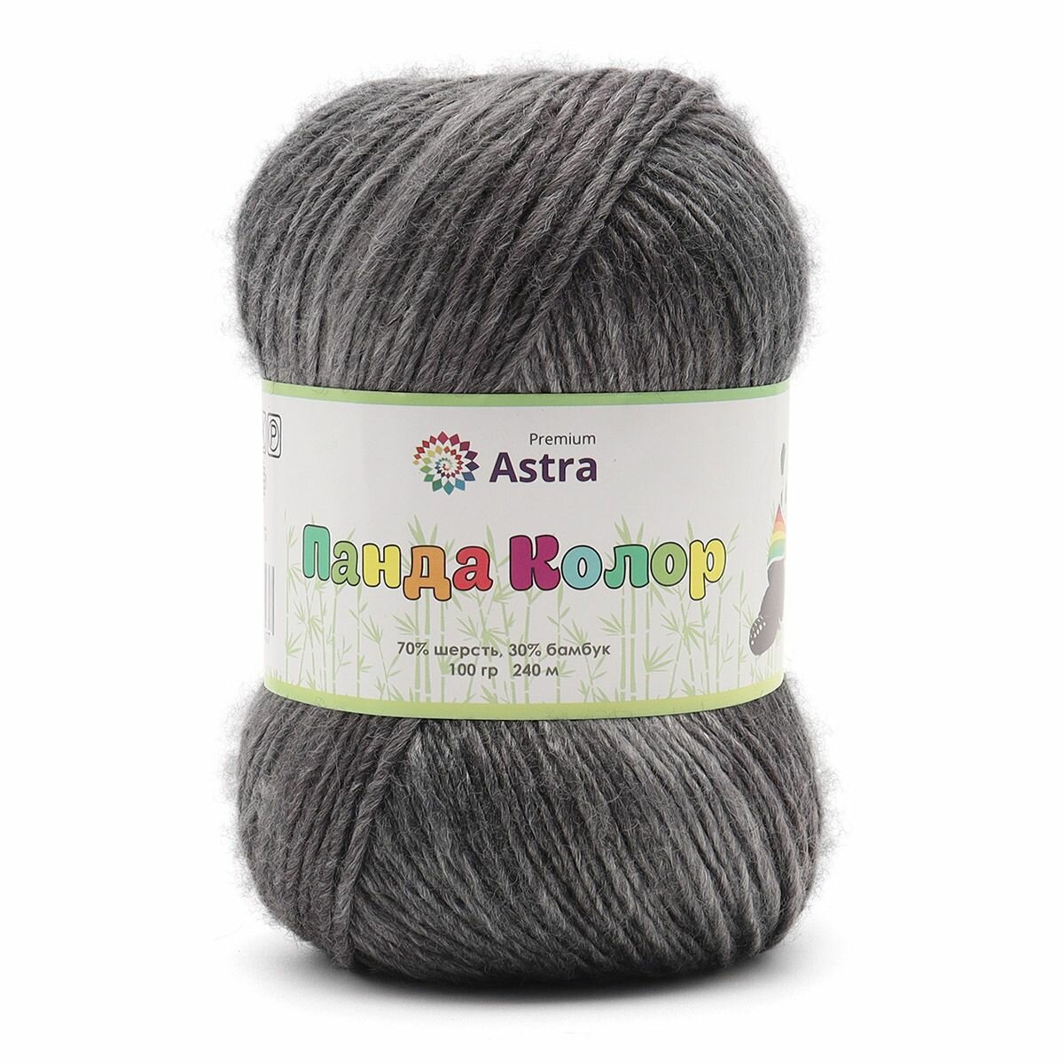 Пряжа для вязания Astra Premium 'Панда Колор' (Panda Color) 100г, 240м (70% шерсть, 30% бамбук) (01 секционный), 3 мотка
