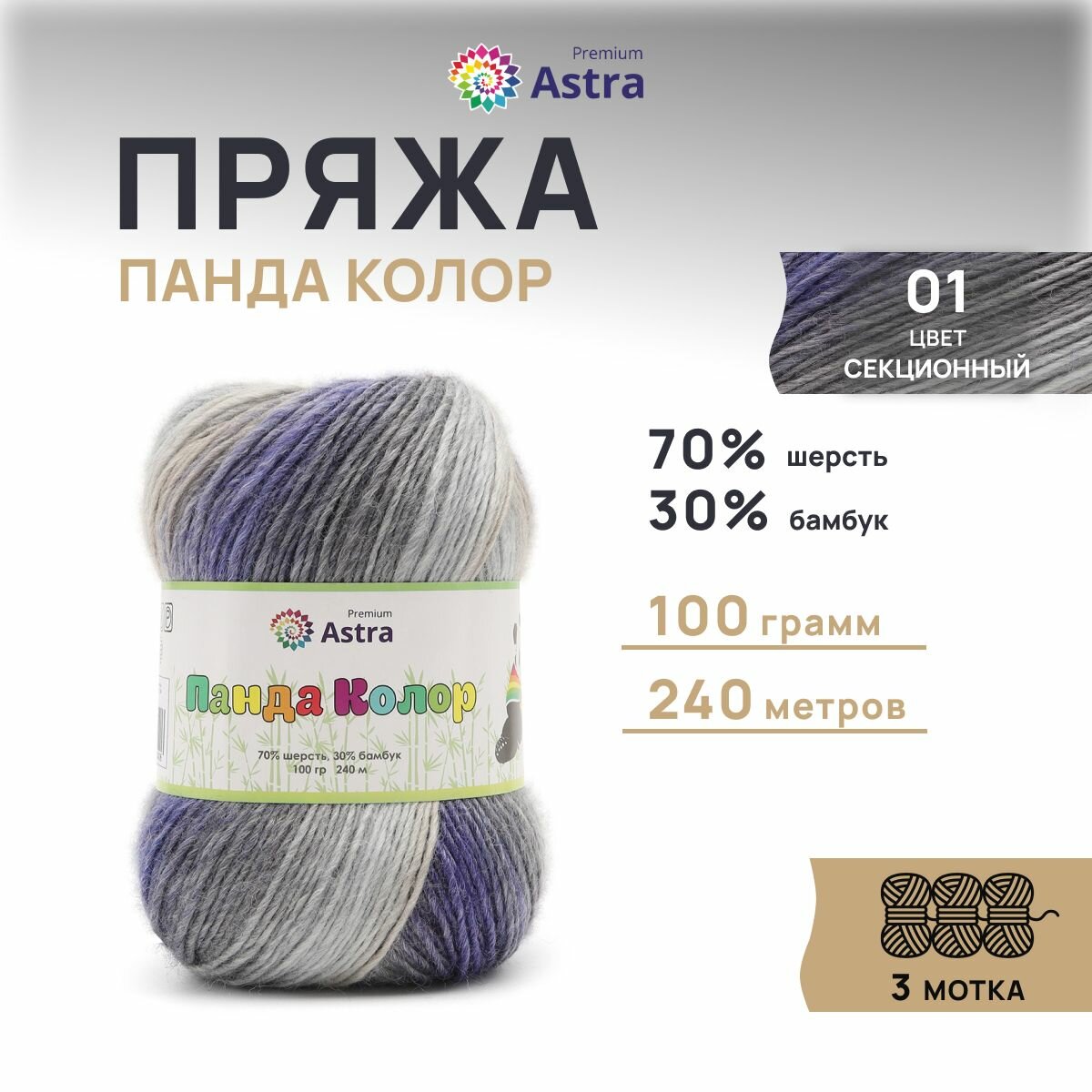 Пряжа для вязания Astra Premium 'Панда Колор' (Panda Color) 100г, 240м (70% шерсть, 30% бамбук) (02 секционный), 3 мотка