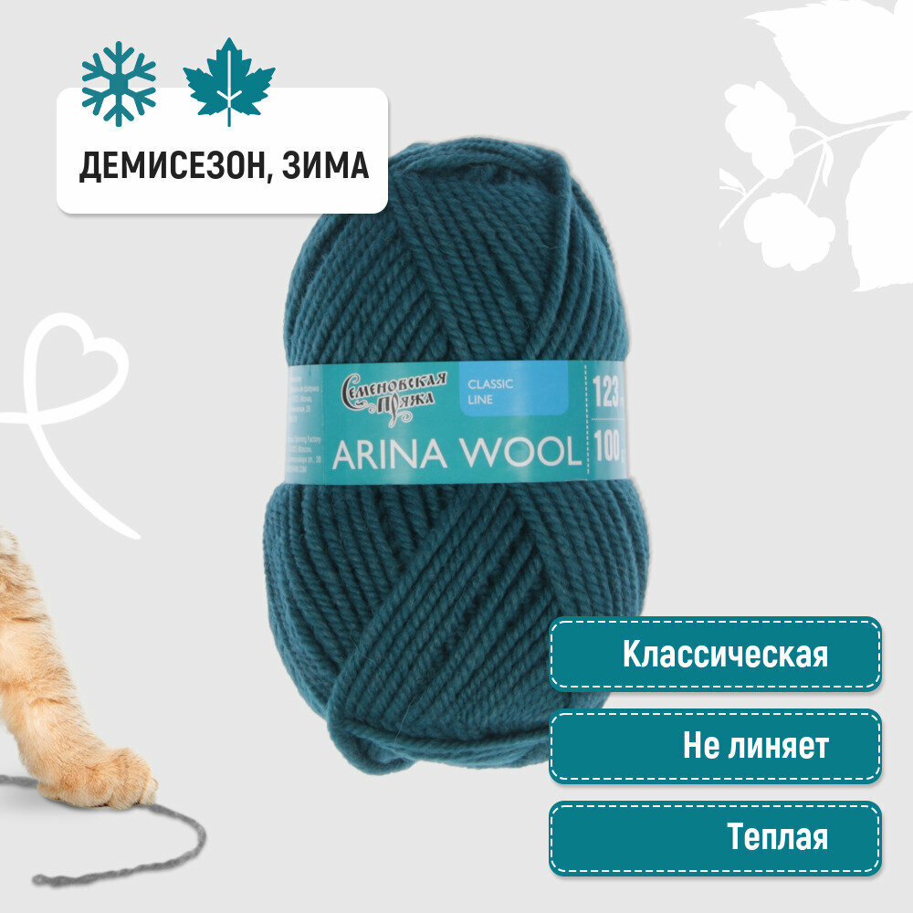 Пряжа Семеновская Arina Wool (Арина ЧШ) морская волна_v2 (90027), 95%шерсть/5%акрил, 123м, 100г, 5шт