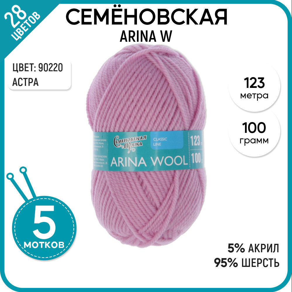 Пряжа Семеновская пряжа Arina W (90220), астра, 5 шт. по 100 г