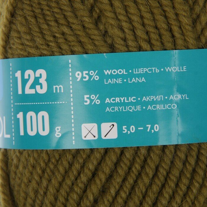 Пряжа Семеновская Arina Wool АринаЧШ, 95% шерсть 5% акрил, зел. янтарь 1437, 1 шт*100гр/123м