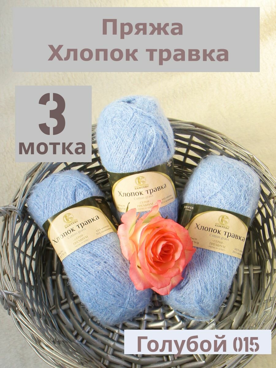 СохранитьПряжа Хлопок травка от Камтекс, цвет Голубой 015, 3 шт*100 г/220 м интересное: