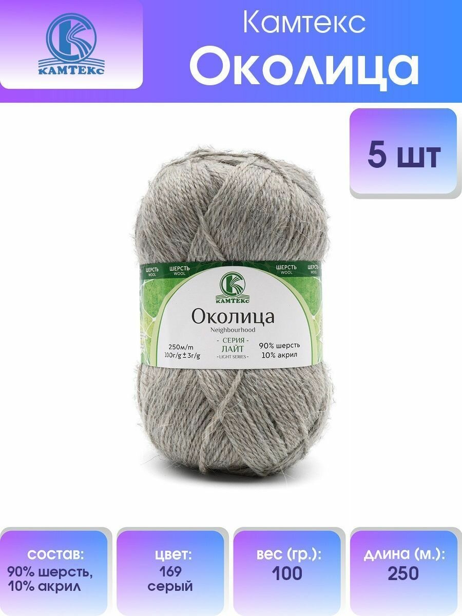 Пряжа для вязания Камтекс 'Околица', 100г, 250м (шерсть 90%, акрил 10%) (169 серый), 5 мотков