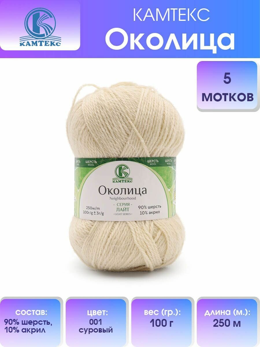 Пряжа Околица (Камтекс), натуральный - 141, 90% шерсть, 10% акрил, 5 мотков, 100 г, 250 м.