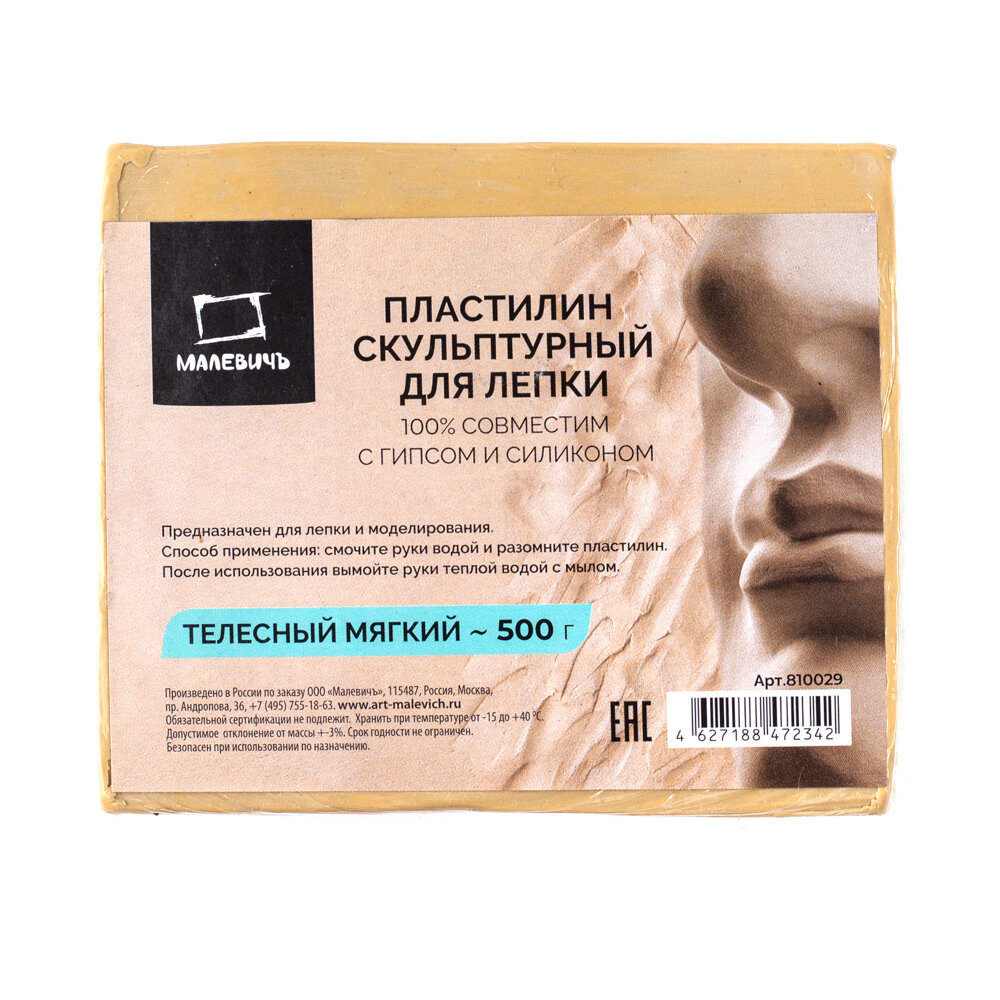 Пластилин Малевичъ скульптурный Телесный мягкий 500 г (810029) интересное: