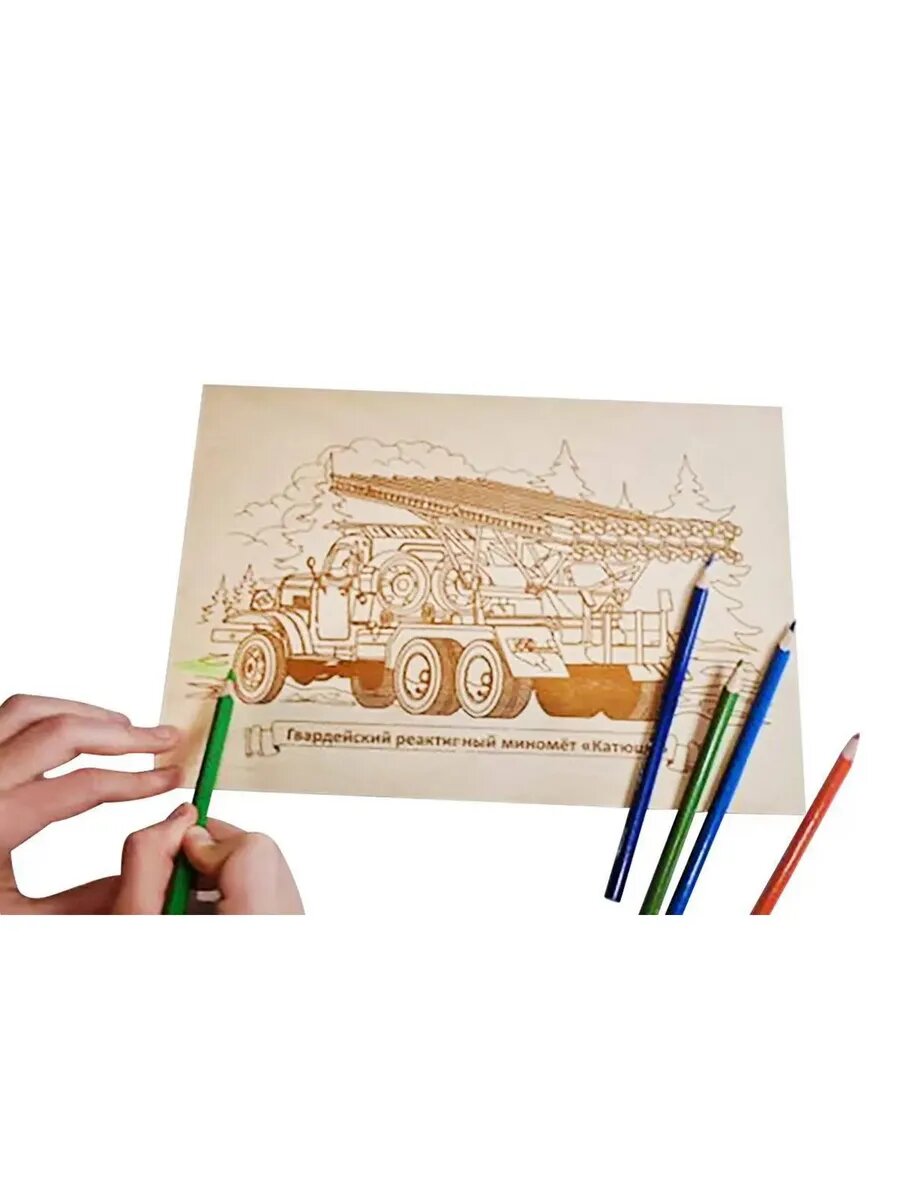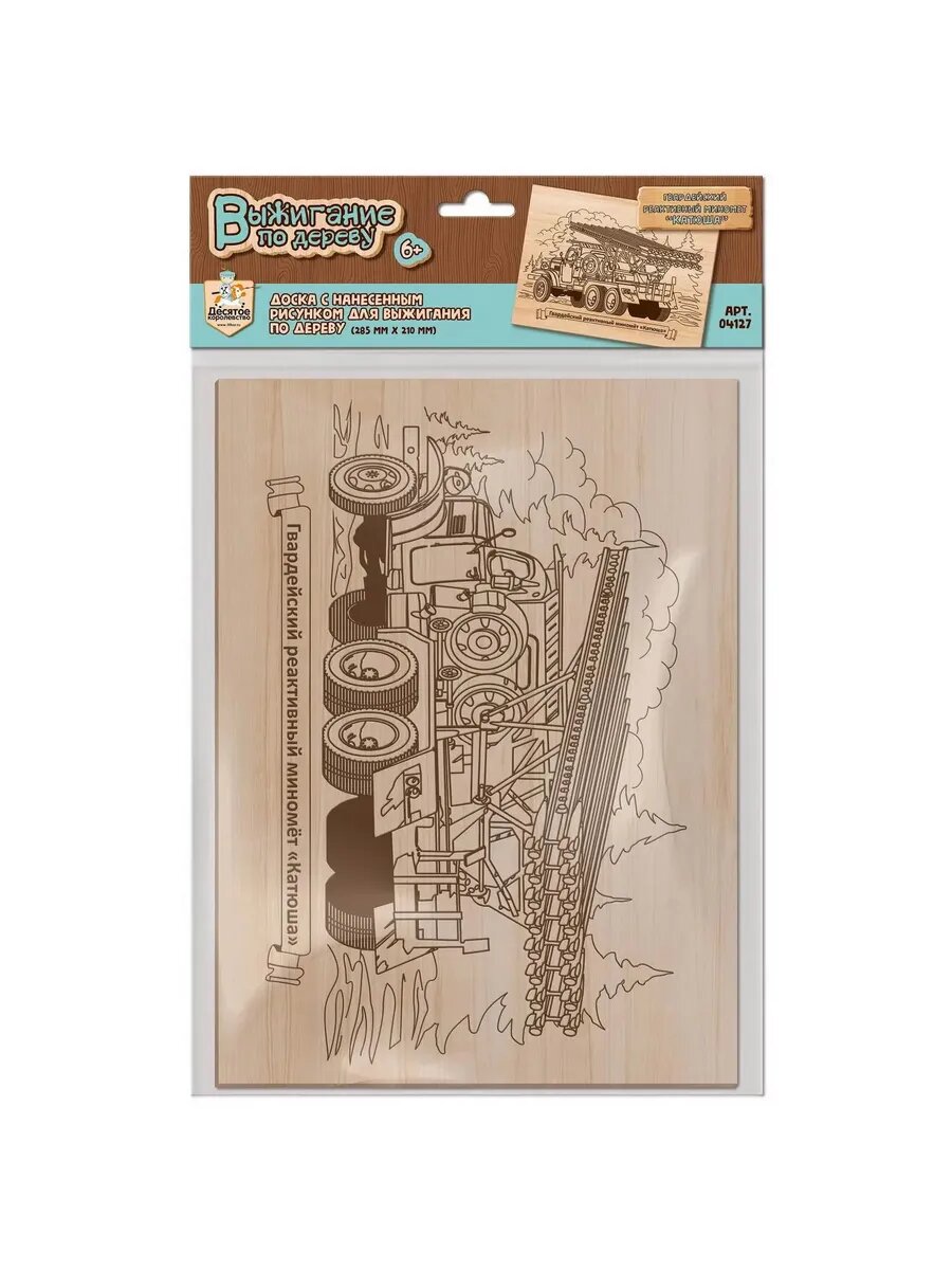 Выжигание По Дереву Доска с нанесенным рисунком. Гвардейский реактивный миномет "Катюша" (в пакете, от 6 лет) 04127, (ООО "Десятое королевство")