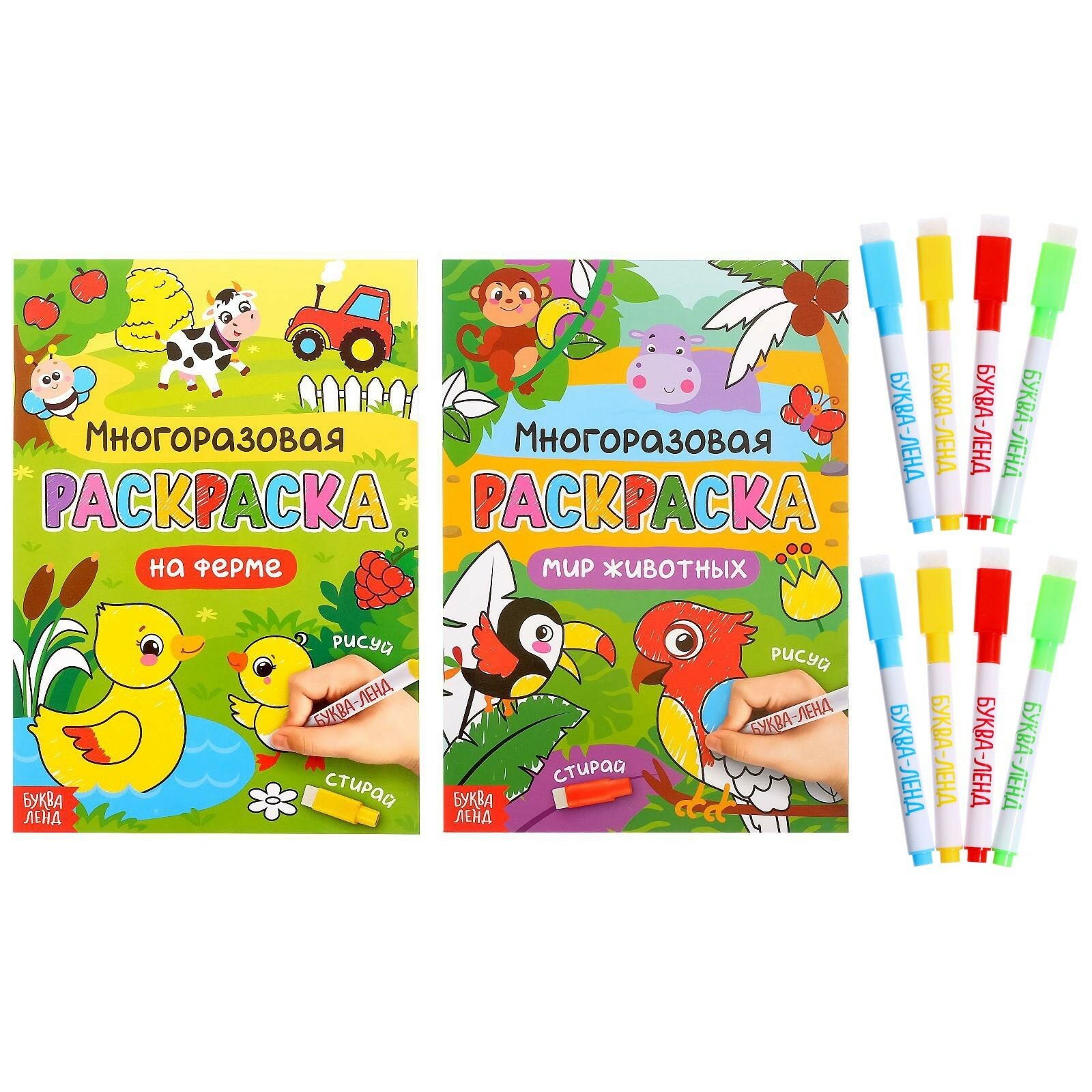 Купить Раскраска многоразовая набор «Рисуй-стирай. Мир животных» 2 шт. по 12 стр.