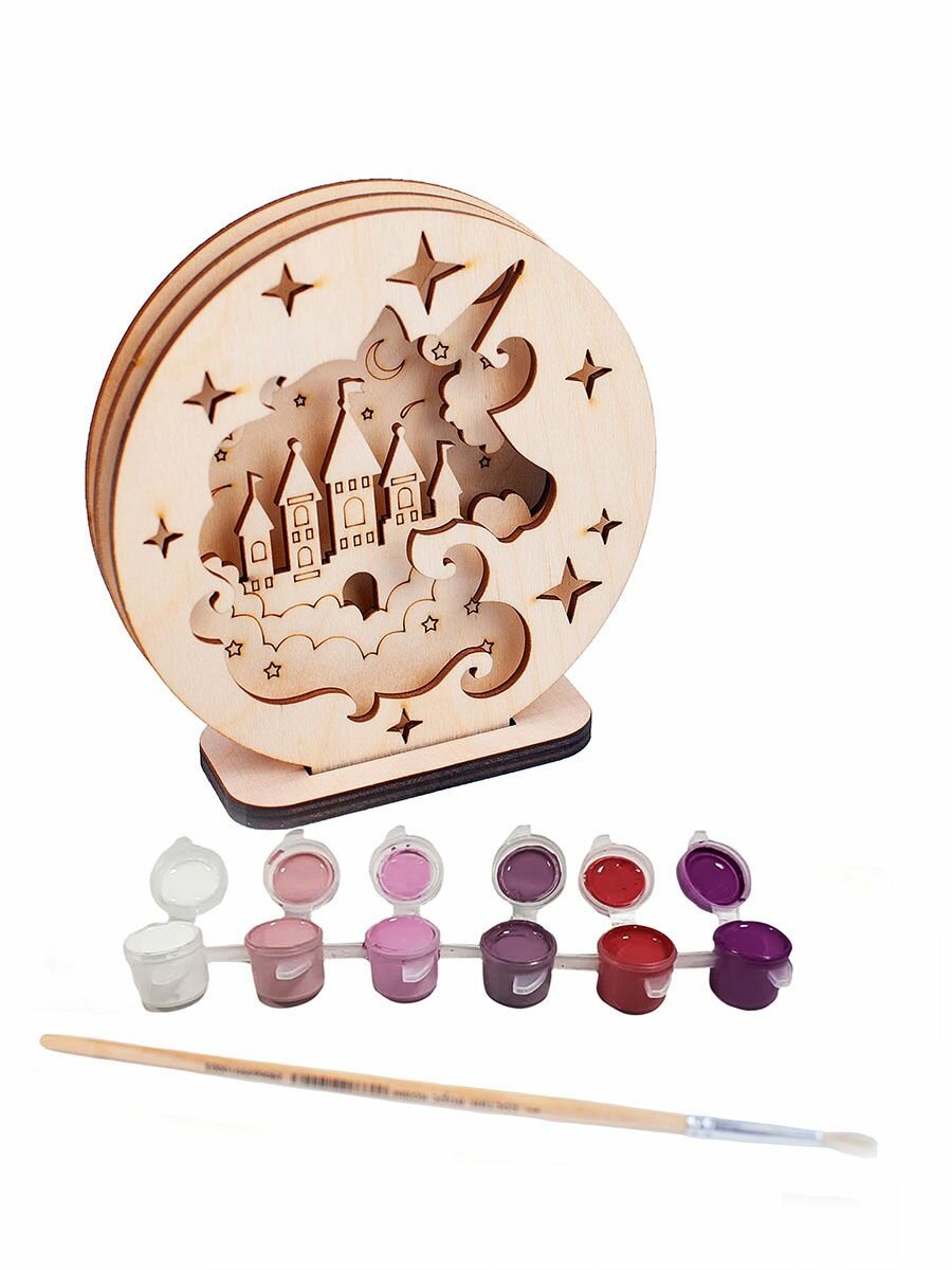 Купить Набор для творчества 3D единорог / Раскраска Единорог из дерева Chudosvetik / Многослойная раскраска - полный комплект