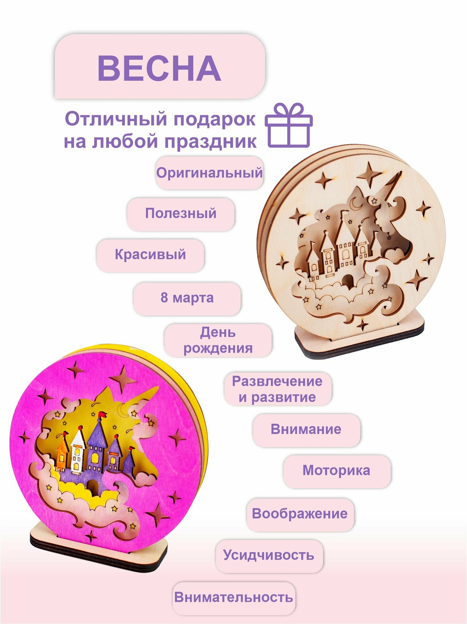 Набор для творчества 3D единорог / Раскраска Единорог из дерева Chudosvetik / Многослойная раскраска - полный комплект интересное: