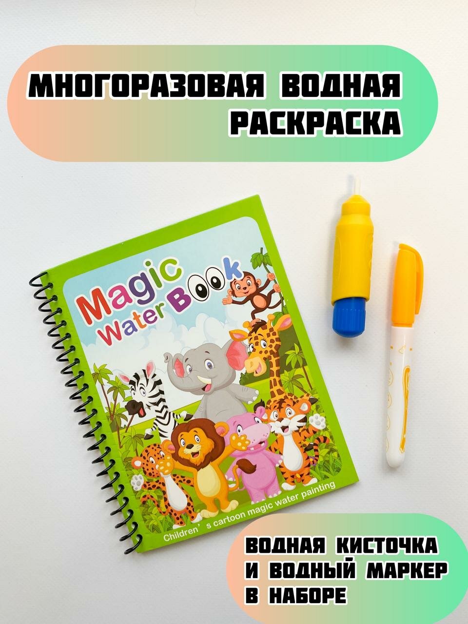 Многоразовая водная раскраска "Звери Африки" с маркером интересное: