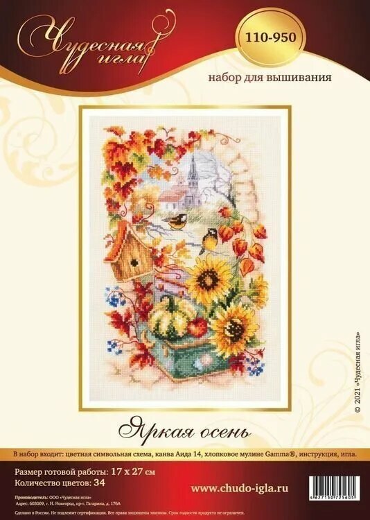 Набор для вышивания Чудесная Игла 110-950 "Яркая осень" 17*27см интересное: