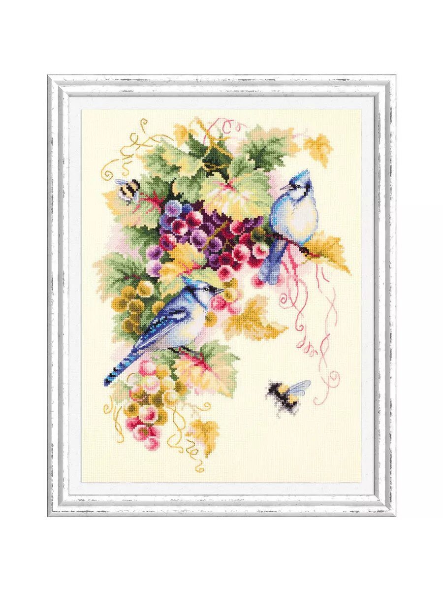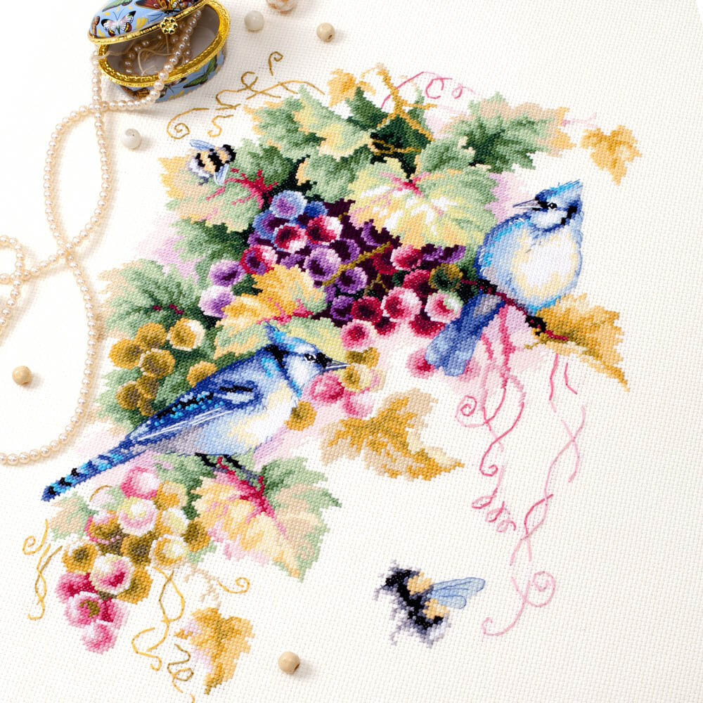 Набор для вышивания Чудесная игла "Сойки и виноград" интересное: