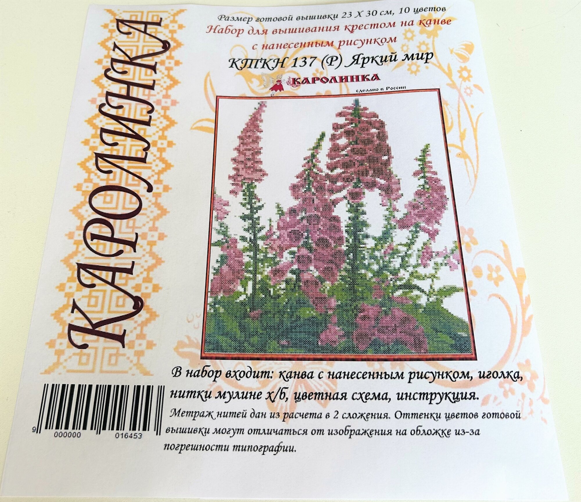 | Дополнительная информация | канва с рисунком не комплектуется мулине |