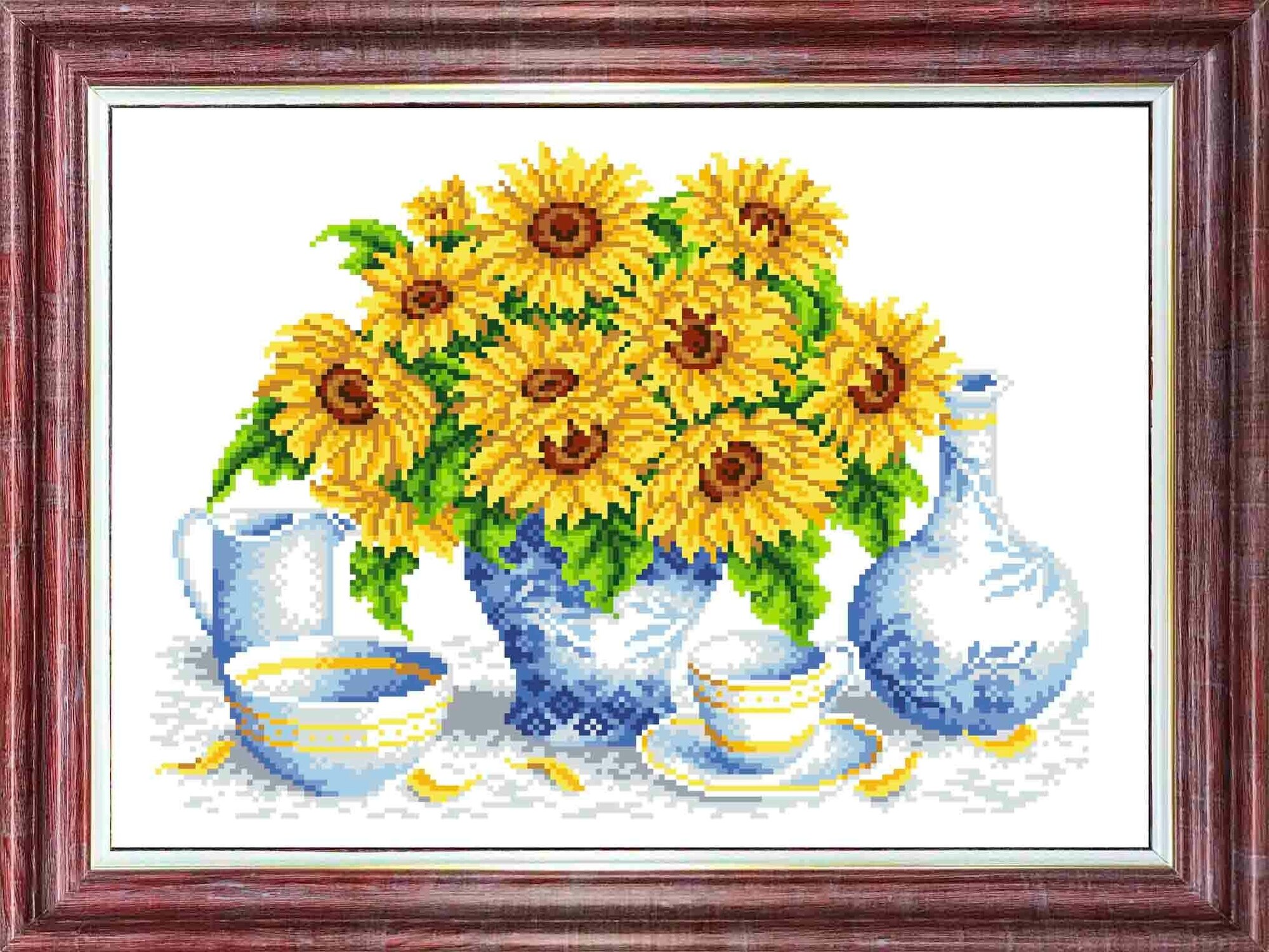 Купить "Подсолнухи в вазе"(цена производителя). Набор для вышивания крестом на канве с нанесенным рисунком