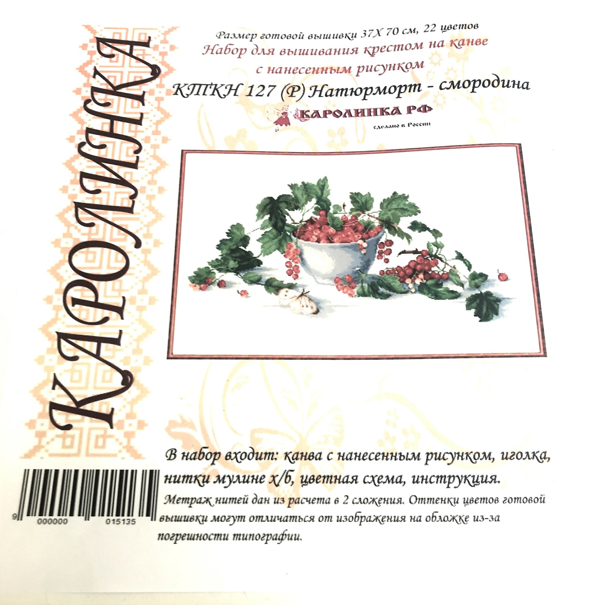 "Натюрморт смородина(цена производителя). Набор для вышивки крестом Каролинка , 37 х 70 см
