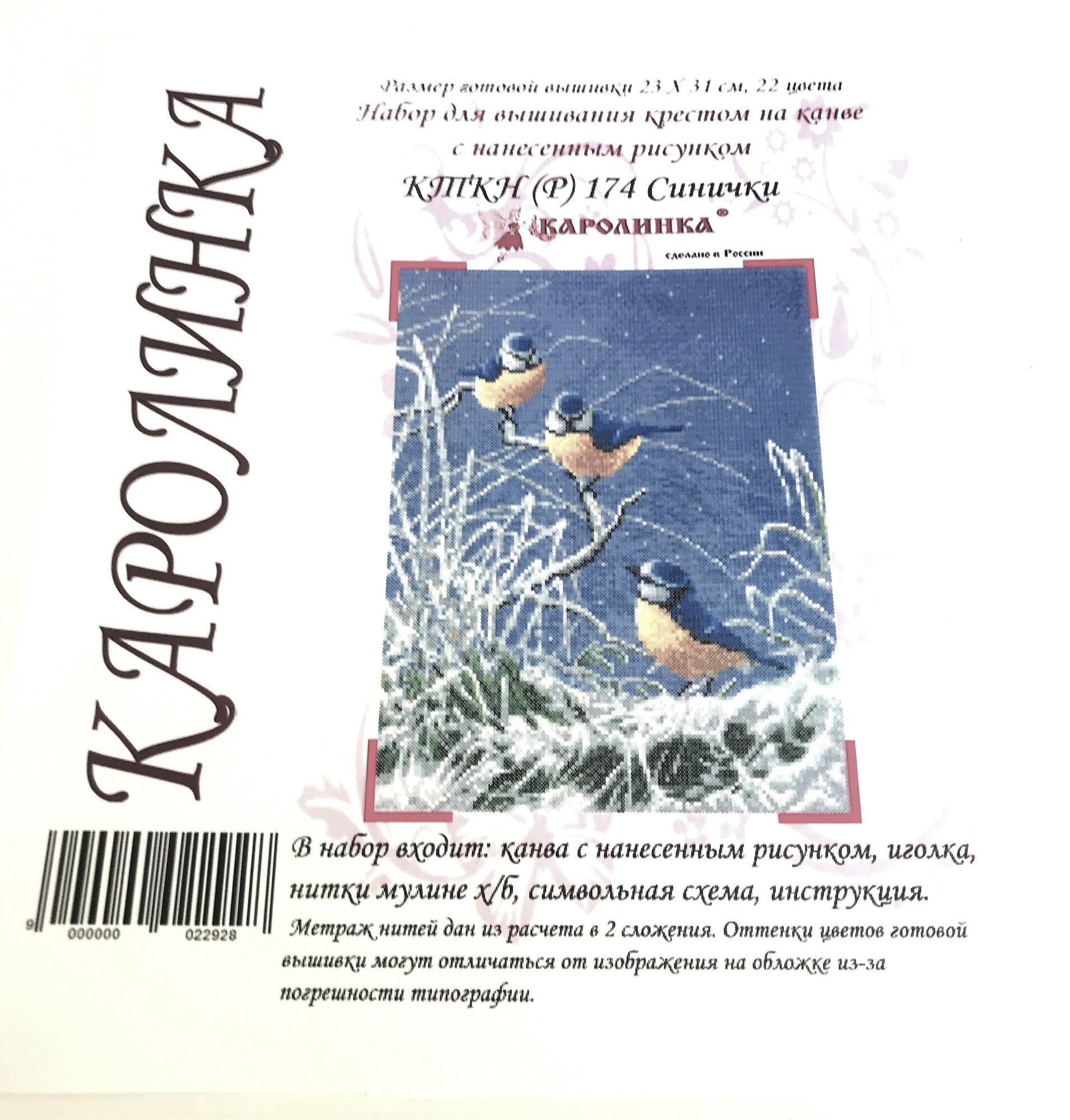 СохранитьНабор крестом канва с рисунком 23х31см(цена производителя.Синички каролинка интересное:
