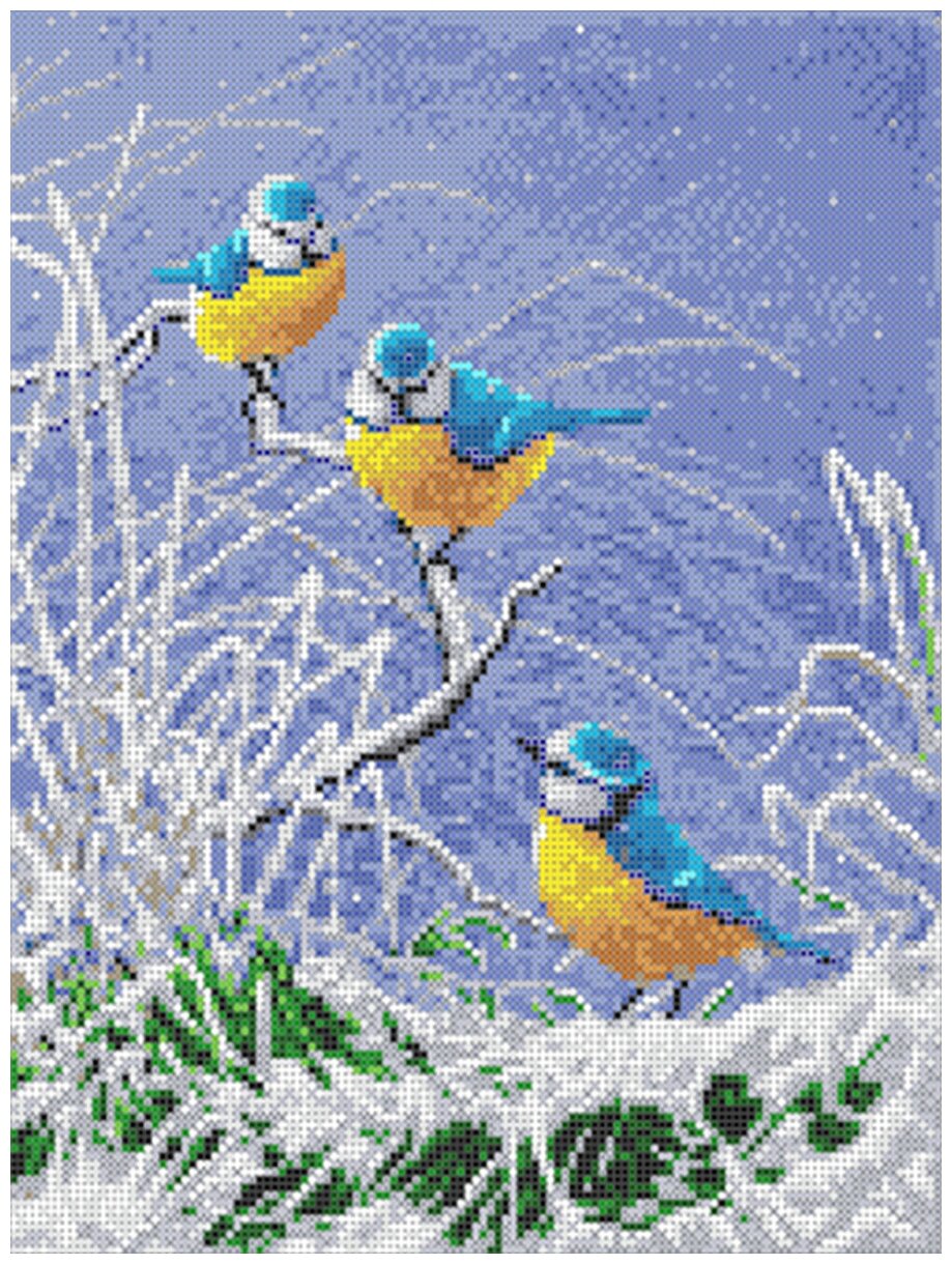 Набор крестом канва с рисунком 23х31см Синички