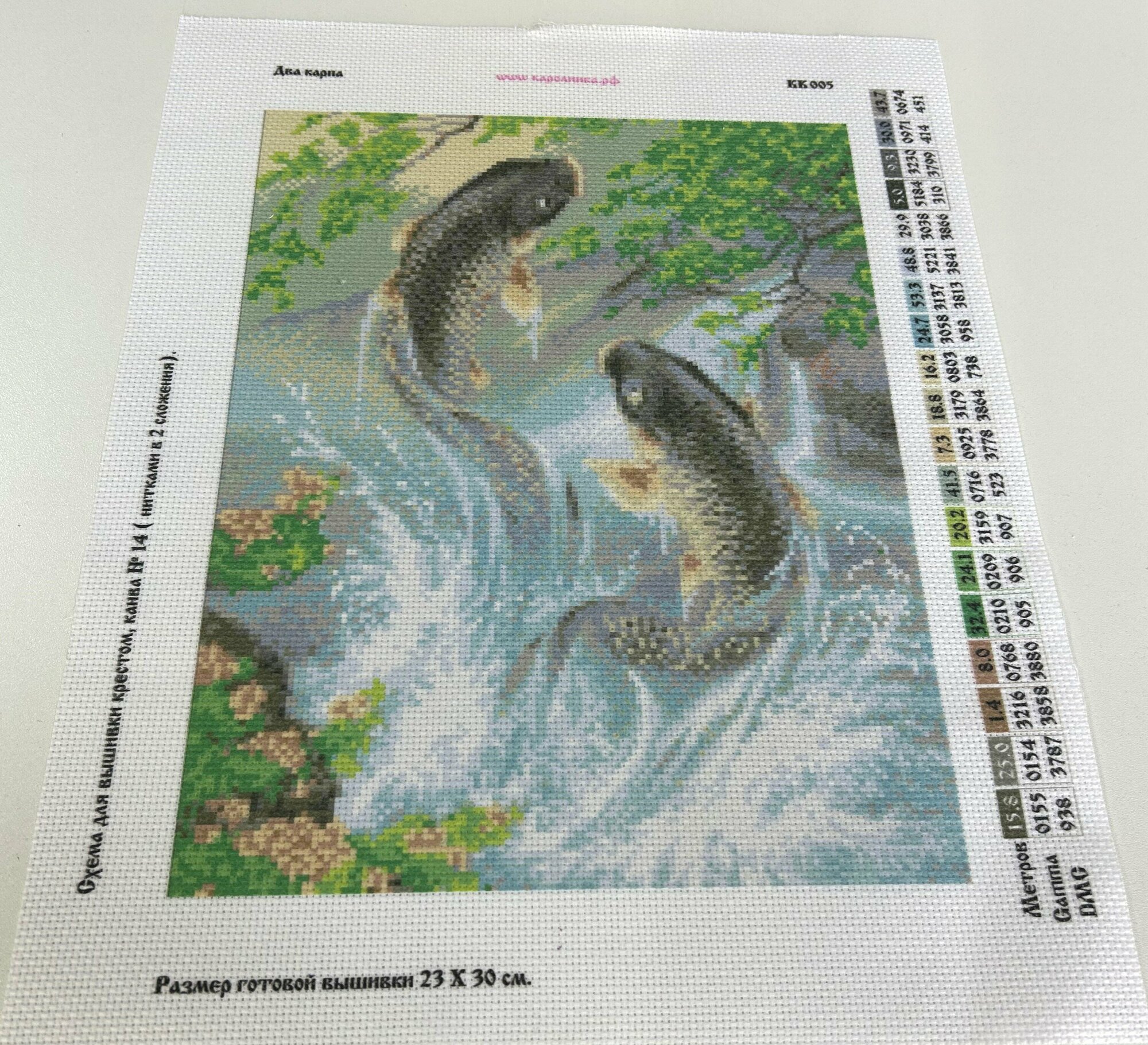 Купить Канва с нанесенным рисунком Каролинка "Два карпа", 23 х 30 см/нитками не комплектуется/