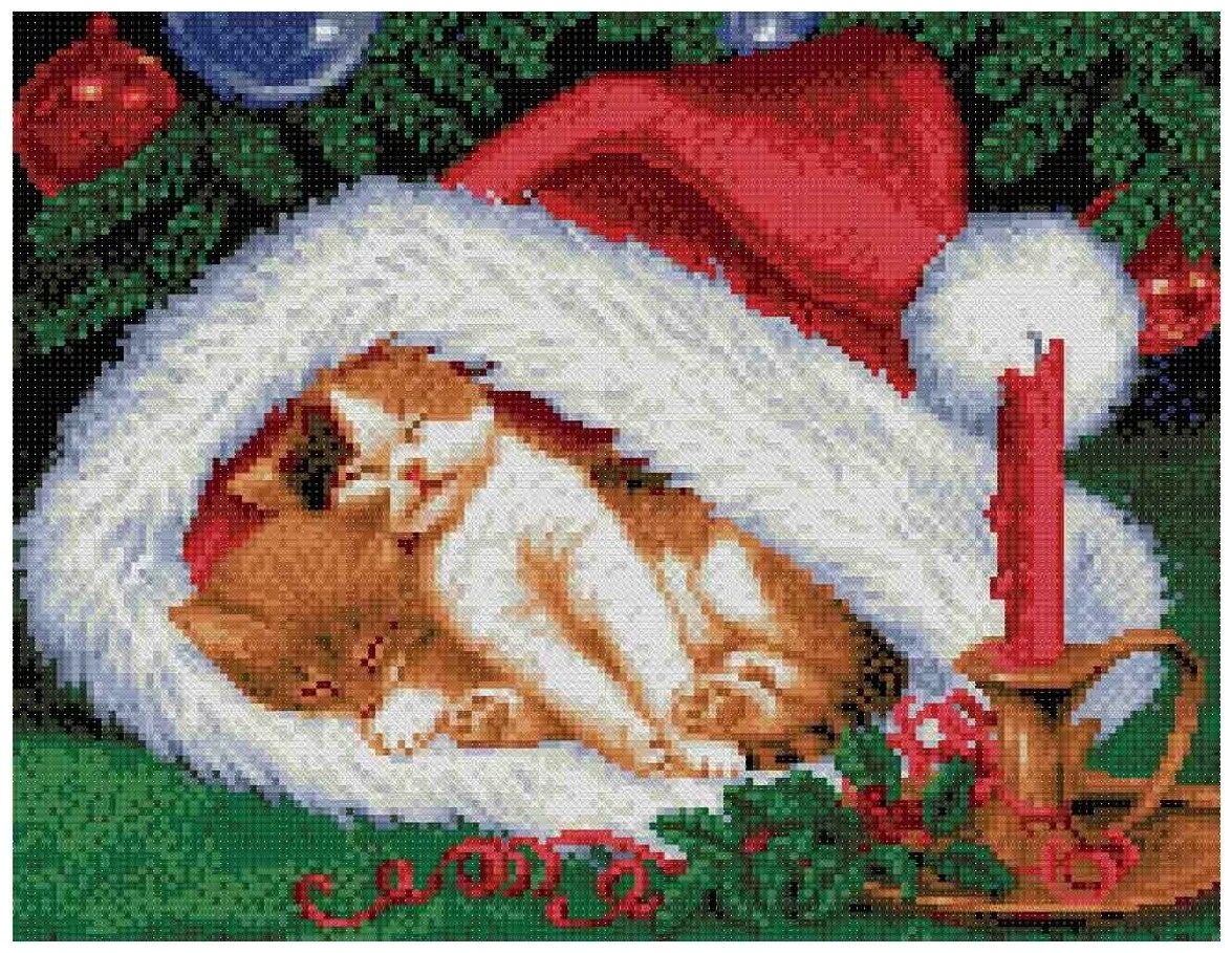 Котята на Рождество (цена производителя) Каролинка. Набор счетным крестом 23х30см