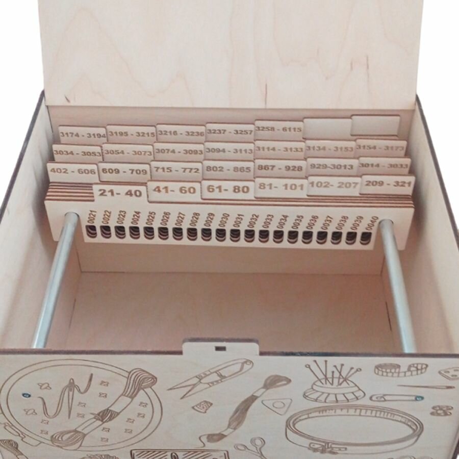 | Комплектация | Короб (органайзер), планшетки на выбор GAMMA или DMC |