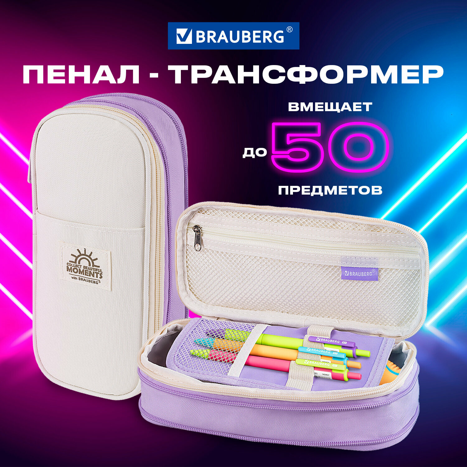 Пенал-трансформер BRAUBERG, полиэстер, 22х10х3 см, "Digital lavender", 271562