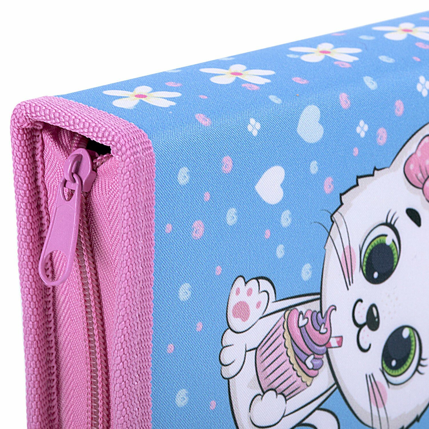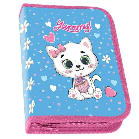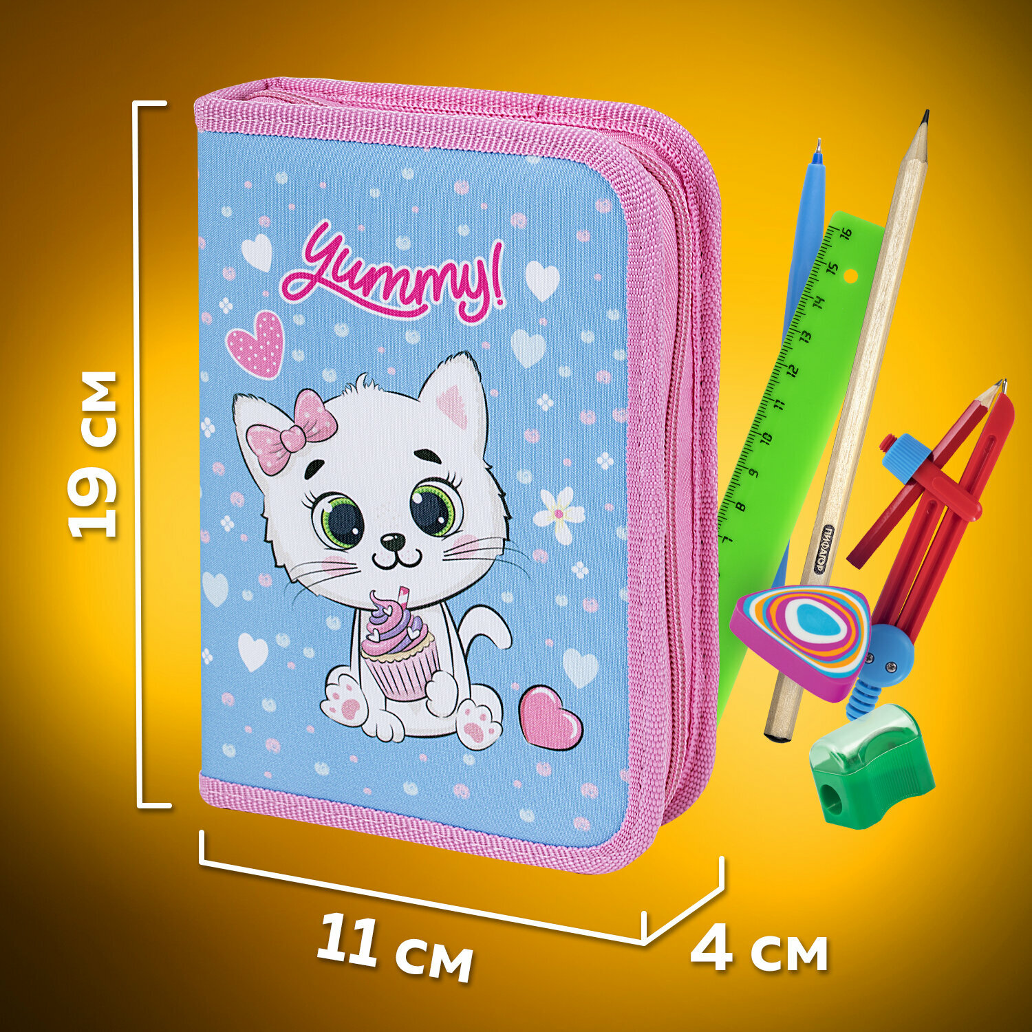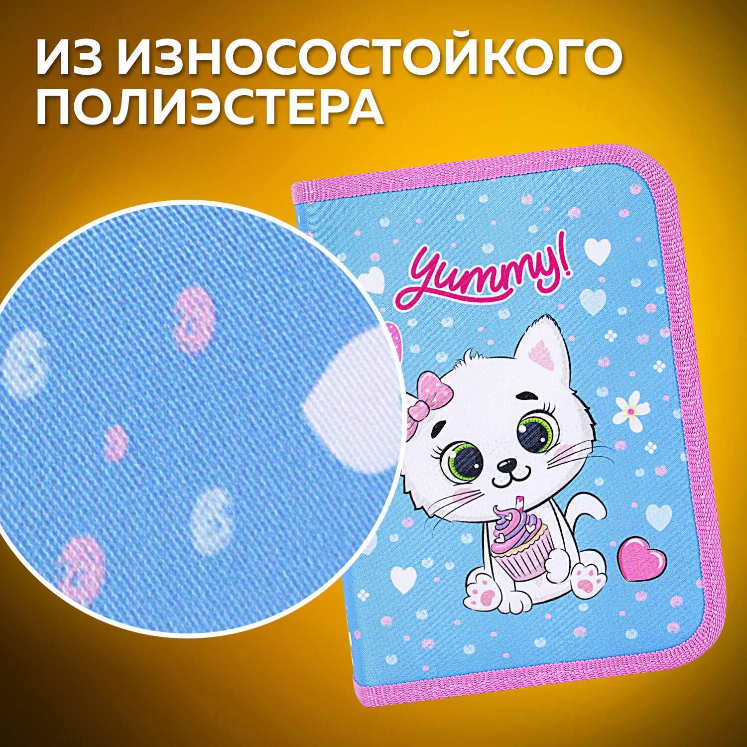 Пенал школьный для девочек для карандашей и ручек с 1 отделением, канцелярия для школы, 2 откидные планки, полиэстер, 20х14, Пифагор Cat, 272287